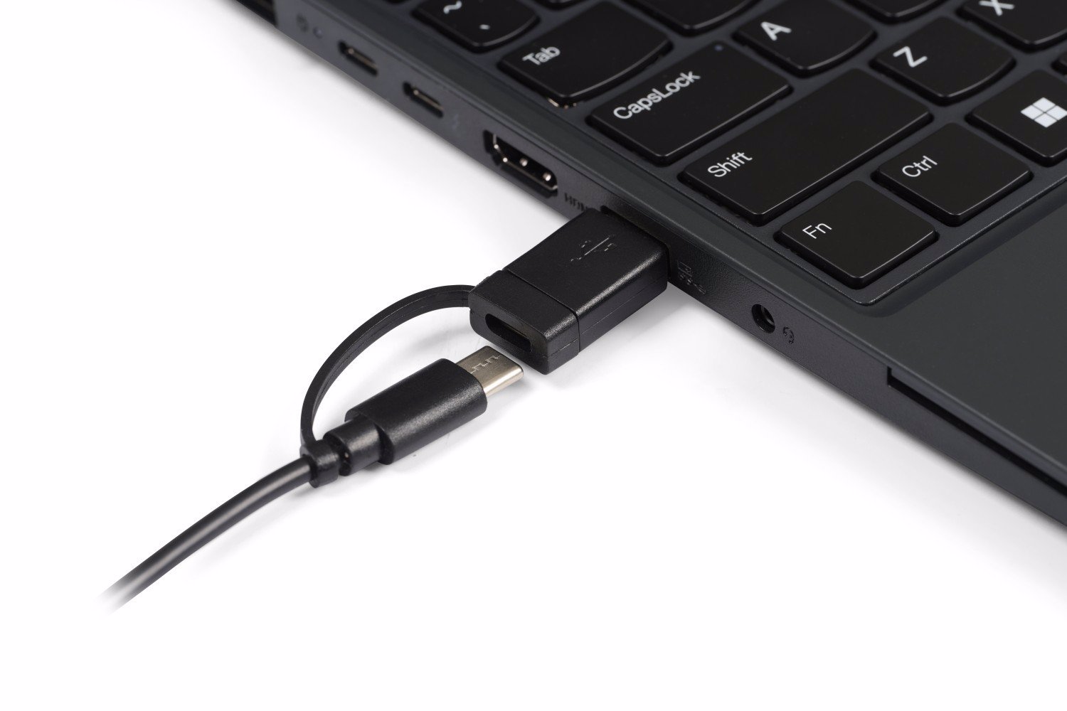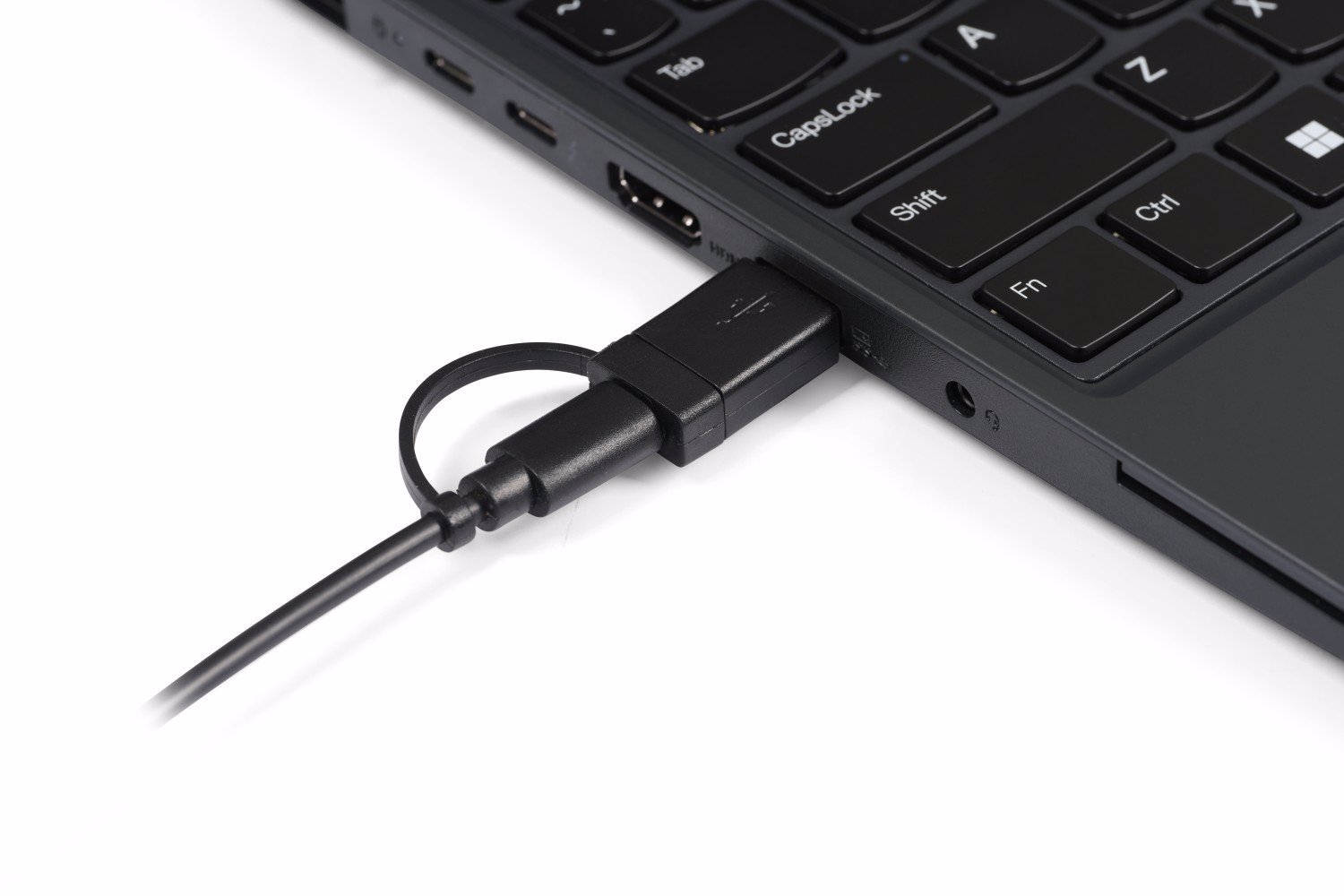 The UltraBoard 950 V2 now features USB-C as the standard connection for this wired keyboard, ensuring modern compatibility. Additionally, it includes a USB-A adapter for versatile connections to various devices and ports. The integrated USB-A hubs remain unchanged so you can keep using your prefered input devices.