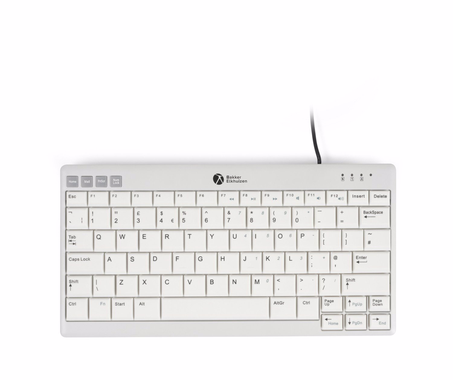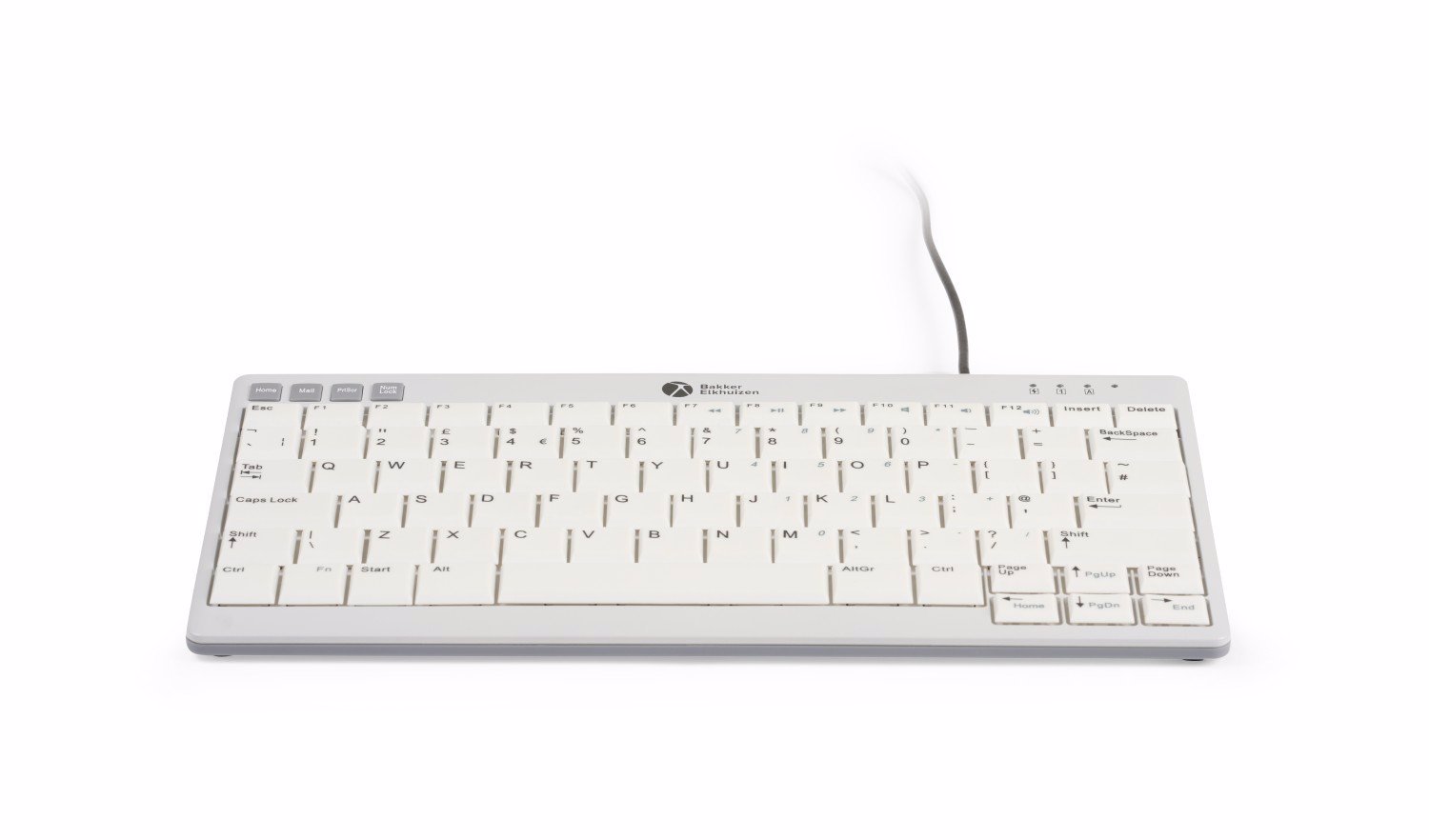 Despite its compact size, the UltraBoard 950 V2 is packed with features. It adheres to ergonomic standards outlined in the DIN EN ISO norms for keyboards. The scissor mechanism, 19mm key center distance, and concave keys with dark lettering on a white background ensure comfortable and accurate typing. Additional features include hotkeys, integrated multimedia keys, and status LEDs for efficient workflow.