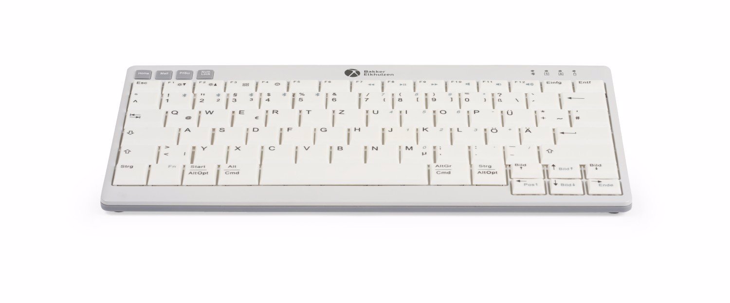 The keys of the UltraBoard 950 Wireless Bluetooth have a scissor mechanism, that makes sure that you can type more comfortably and easily. The advantage of those kind of keys is, that they are quieter and require less force to press. The scissor mechanism guarantees, that the user still recognizes the pressure point of the keys while typing, and at the same time does not have to apply to much key pressure force to press down the keys.