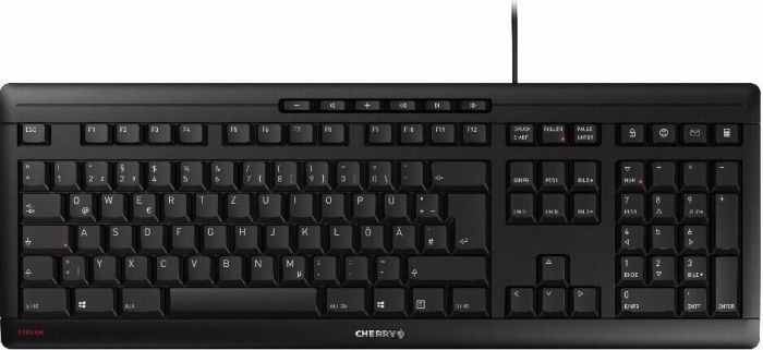CHERRY STREAM KEYBOARD, Fuld størrelse (100 %), Ledningsført, USB, Mekanisk, QWERTZ, Sort