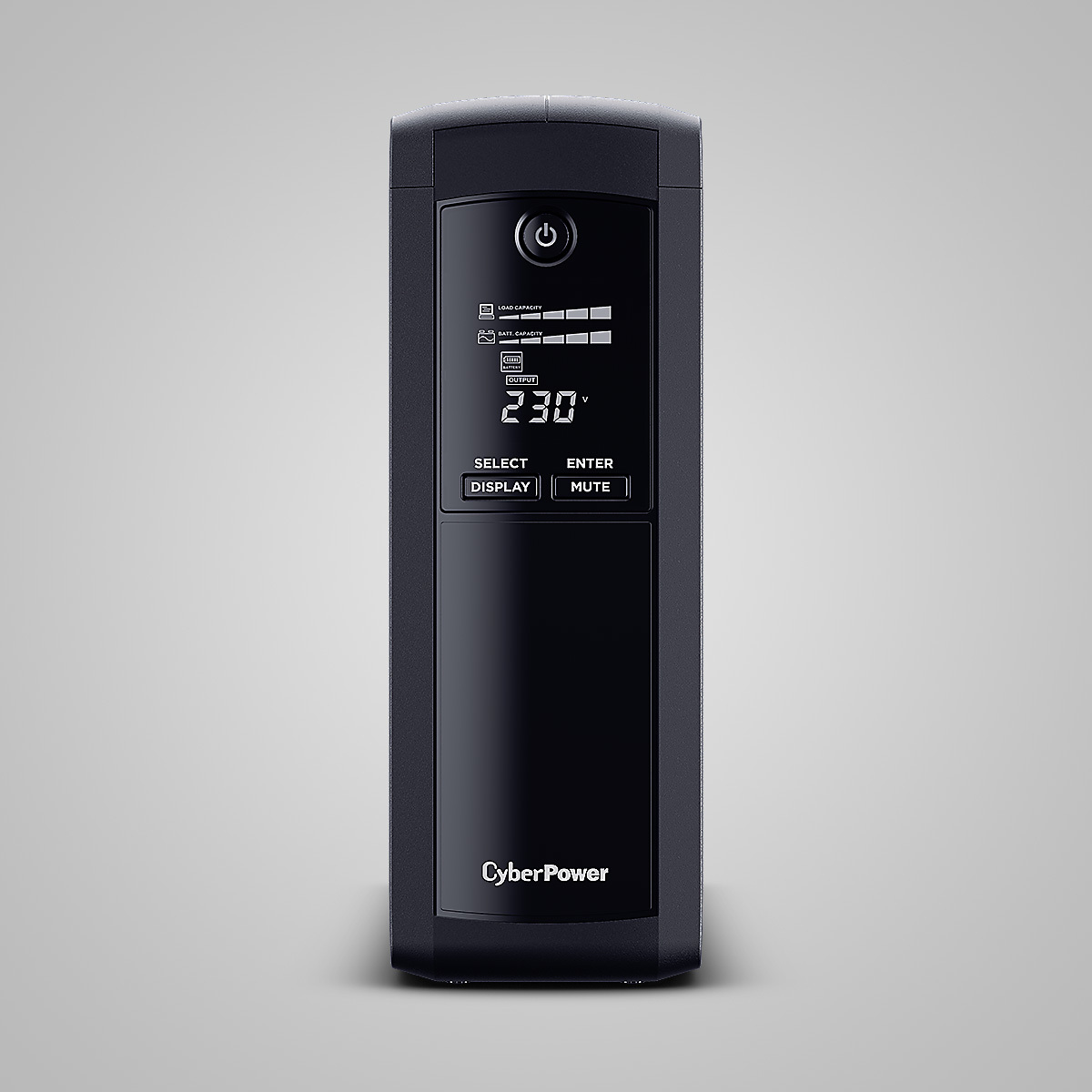 CyberPower VP1200ELCD-FR offers home and office users a reliable battery backup and safeguards office PCs and other electronic devices from surges, spikes, brownouts and other power incidents. Designed with GreenPower UPS™ Technology to improve operating efficiency and to minimize energy consumption, users can enjoy significant energy cost savings over conventional UPS systems. The UPS provides Automatic Voltage Regulation (AVR) to maintain safe voltage for connected equipment.