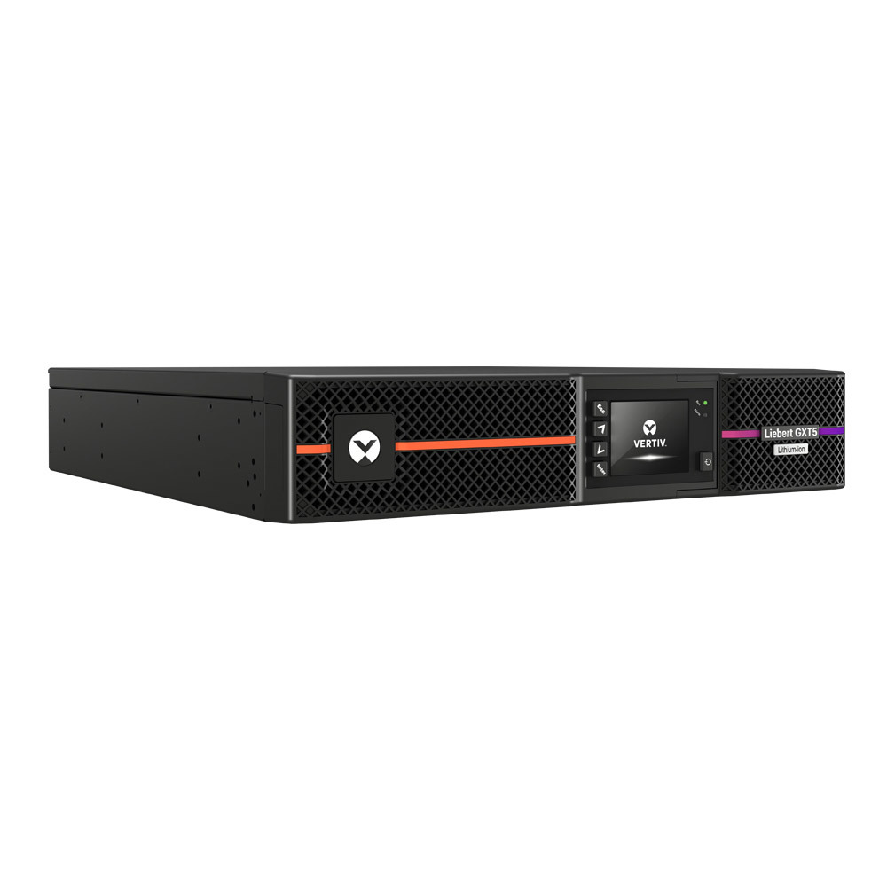 The Vertiv Liebert GXT5 Lithium-Ion UPS protects critical IT applications against outages and various power disturbances. This online UPS offers the highest level of power conditioning and battery backup in server rooms, network closets, and other edge or distributed IT locations. Lithium LFP batteries require fewer battery replacements and last up to 3x as long as traditional VRLA batteries reducing maintenance, labor, and replacement costs (resulting in the lowest TCO). Internal batteries offer industry-leading runtime (up to 14 minutes at full load (varies by model)) to protect critical equipment during an unexpected power loss. They offer better performance at higher temperatures, supports up to 10 times more discharge cycles, and delivers faster recharge times compared to VRLA batteries. Hot-swappable, user-replaceable batteries may increase the useable life of the UPS by allowing you to easily replace the batteries, if needed, without disrupting power to connected equipment.