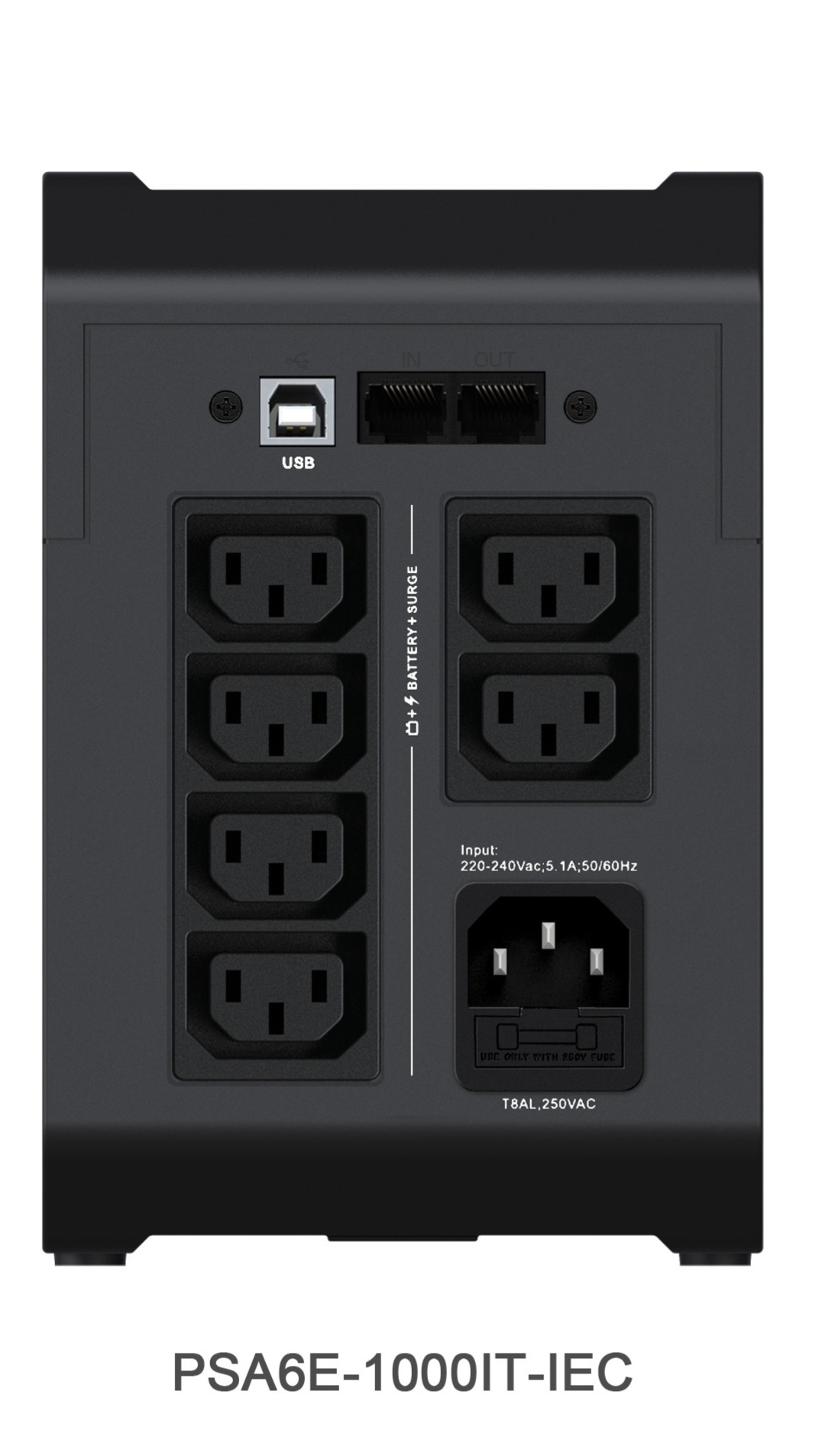 The Vertiv PowerUPS 200 Essential Line Interactive Series PSA6E-1000IT-IEC is an affordable and reliable 230VAC uninterruptible power supply (UPS) battery backup system. With 6 IEC outlets, this UPS offers flexible, basic power protection to multiple devices simultaneously, including computers, wireless networks, retail point-of-sale (POS) equipment, surveillance systems, and more. It has automatic voltage regulation (AVR) which helps to stabilize output power during fluctuations and extend battery life, as well as a two-year warranty for long-term peace of mind. The PowerUPS 200 Essential Series is now more intuitive and user-friendly than ever before with LED lights to easily indicate remaining runtime, user-replaceable batteries, and a dedicated mute button to silence alarms. It also includes Vertiv’s free management software, Vertiv Power Assist, which can be used to gracefully shut down connected equipment during an outage to protect it from damage and data loss.