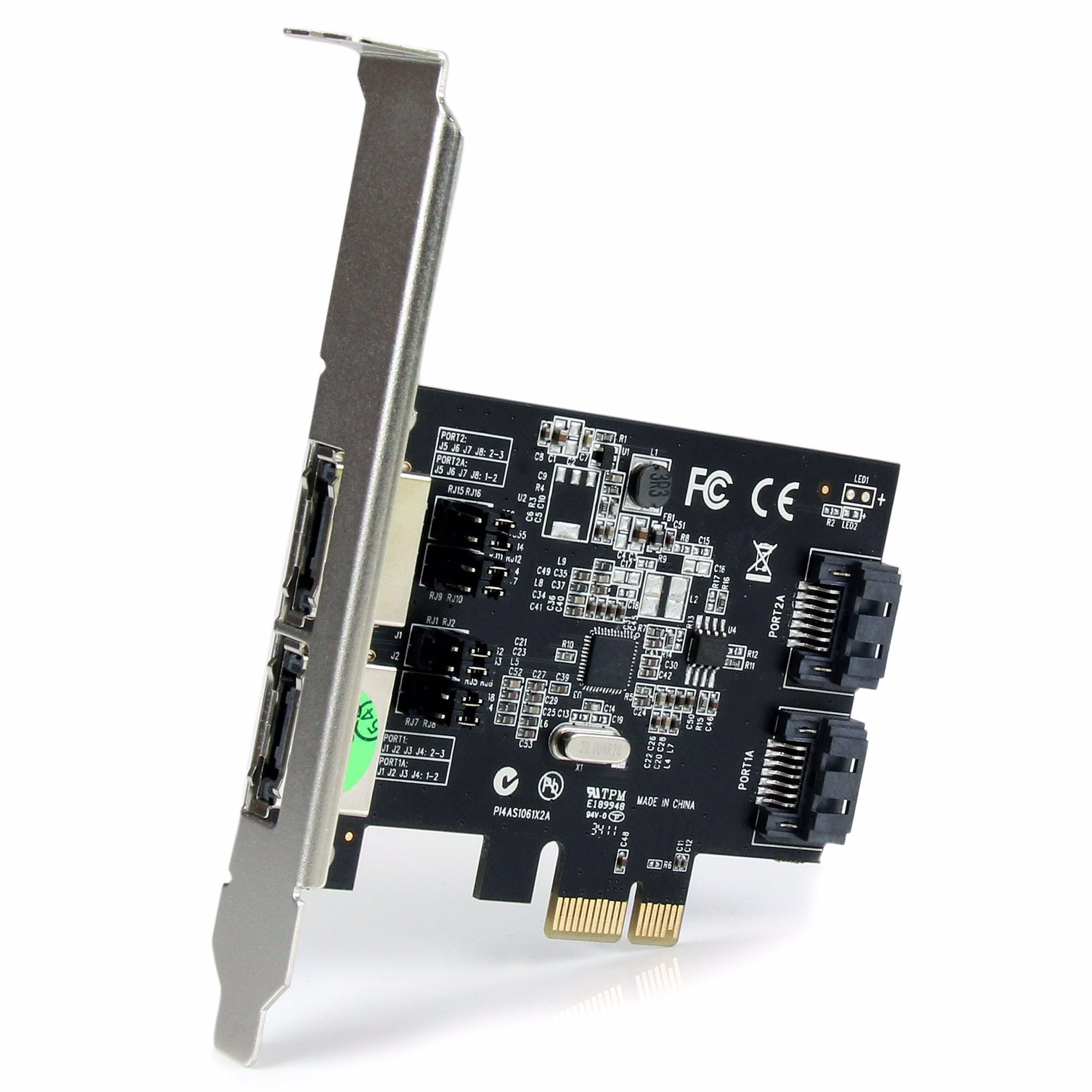 The PEXESAT322I PCI Express SATA III Controller Card (6 Gbps) gives you the option to add 2 internal or external SATA ports to your computer, through a single PCI Express (x1) card slot. The card features on board jumper selection, which enables you to configure the card to provide 2 internal or external SATA III ports, or one of each, as needed.