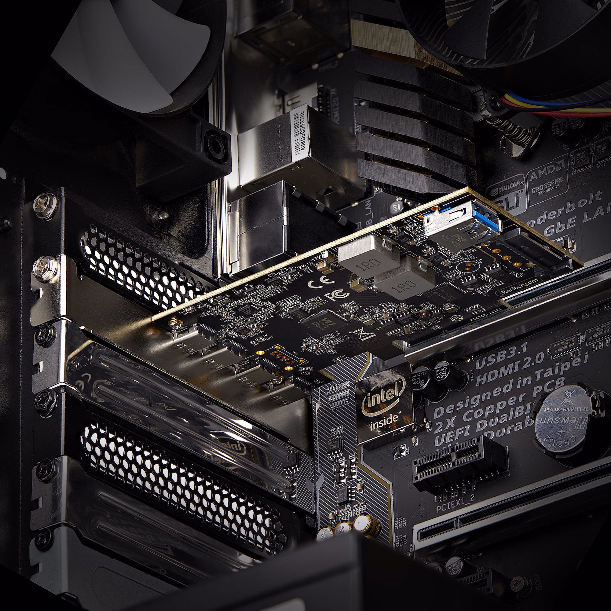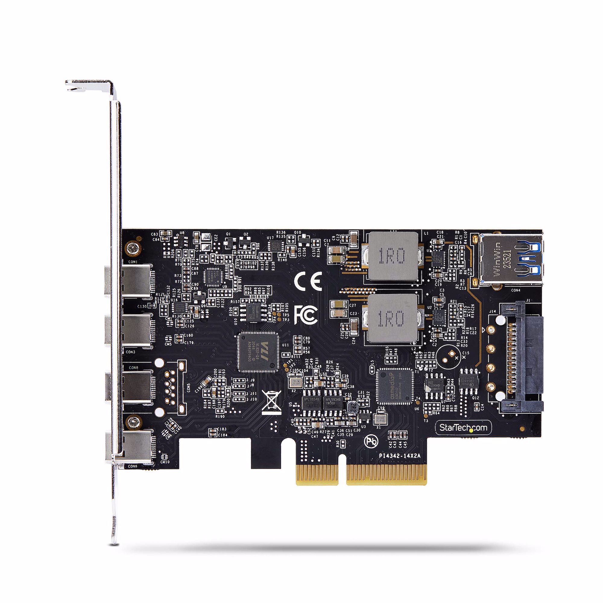 Add four USB Type-C (USB 3.2 Gen 2 10Gbps) ports to a PCIe host computer, plus an internal USB Type-A (10Gbps) port