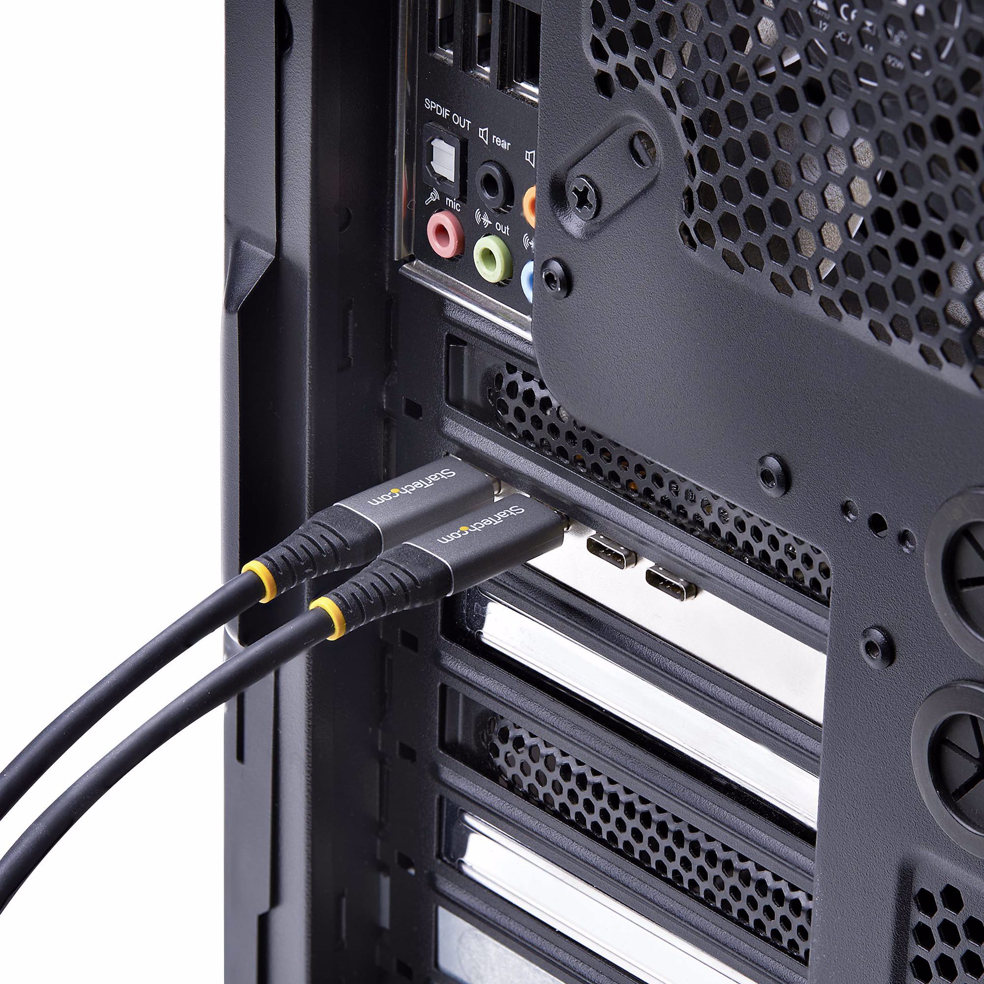 The PCI Express USB card drivers auto-install in most major operating systems, including Windows 8 and up, macOS, and Linux. It works with hardware platforms such as Intel, AMD, and Apple Silicon and fits in PCI Express x4, x8, and x16 slots. Additionally, the USB expansion card comes with a pre-installed standard profile bracket and includes a low-profile bracket for compatibility with small form factor (SFF) desktops and servers.