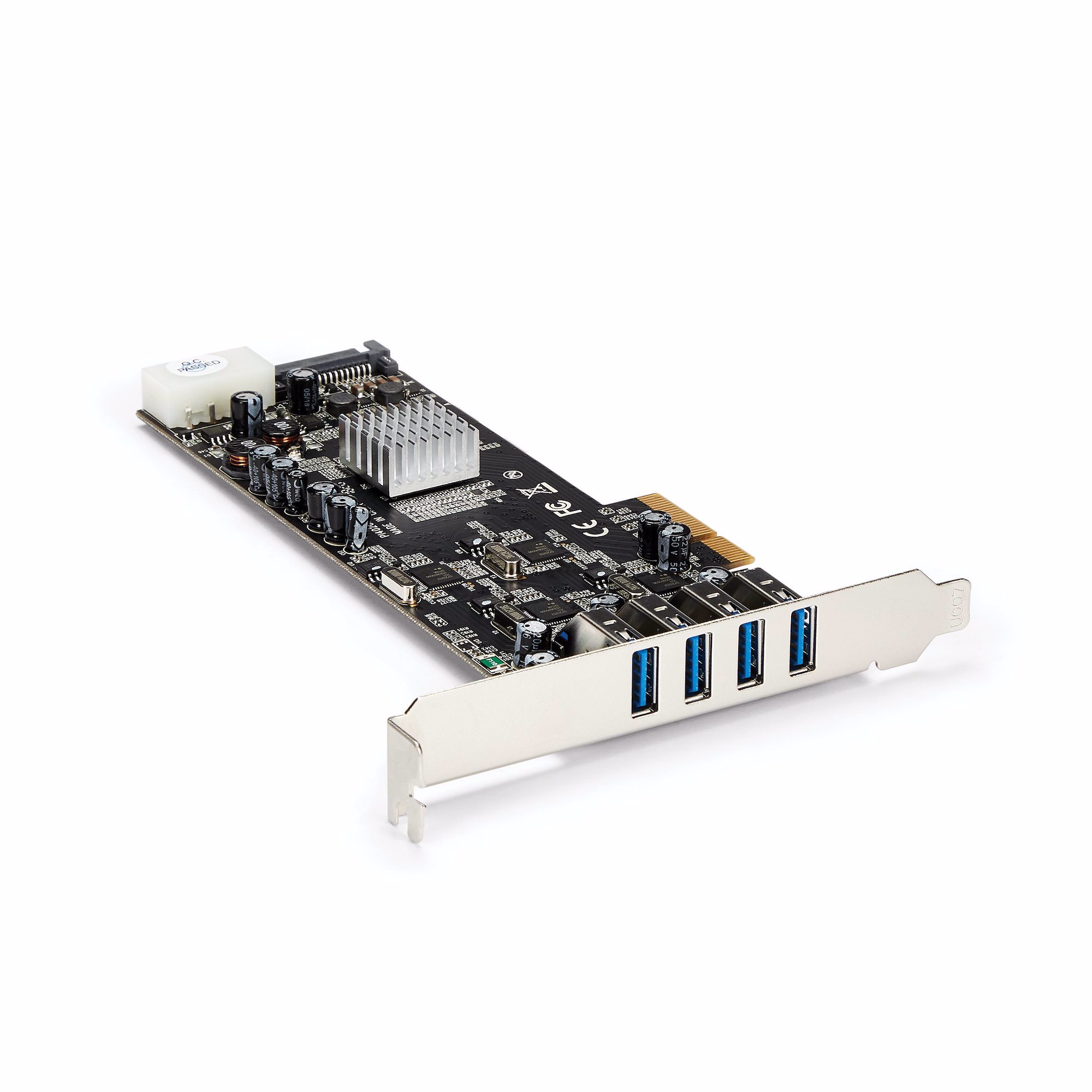 Add four USB 3.0 (USB 3.2 Gen 1) ports with four independent channels, LP/SATA power, and charging support to your PC through a PCI Express slot