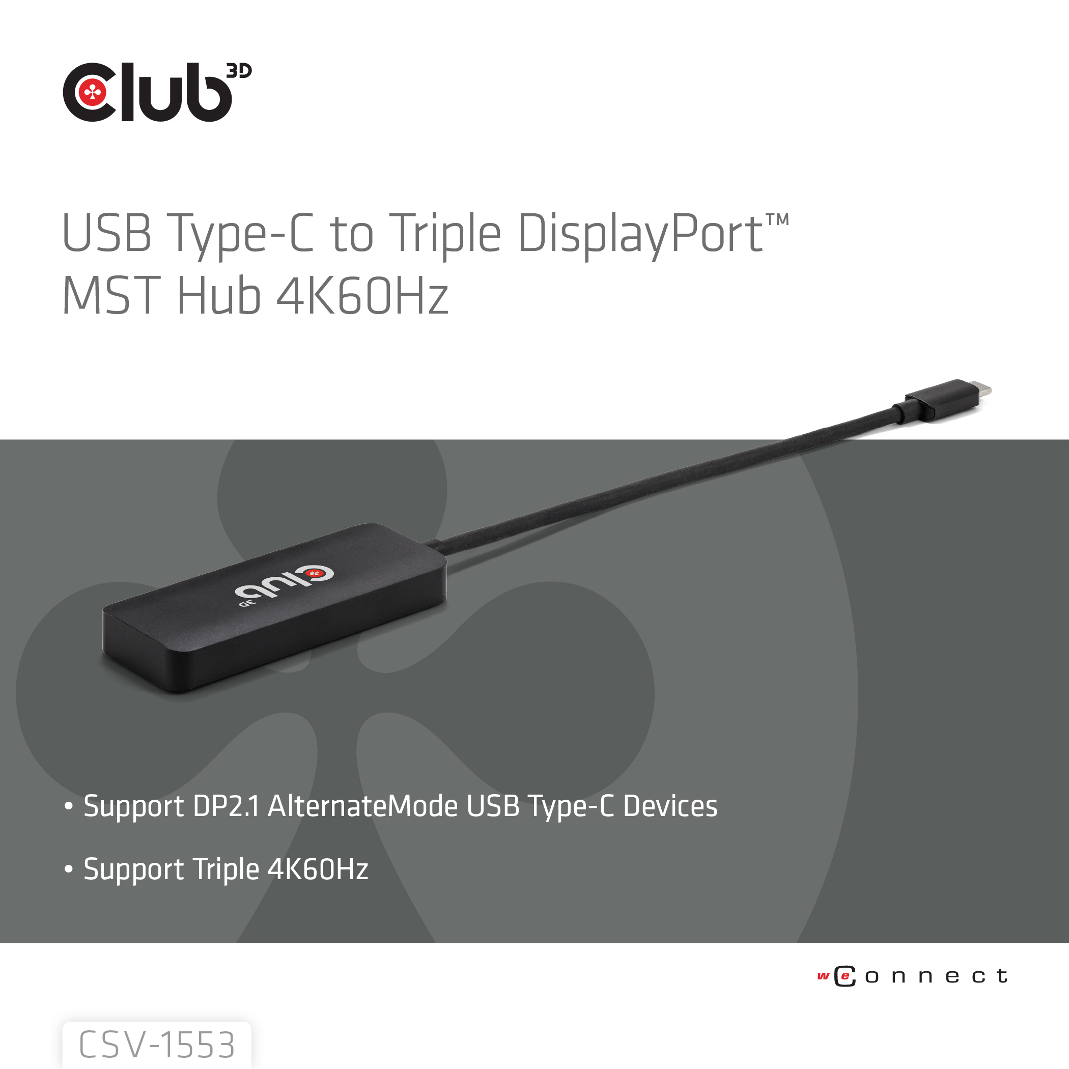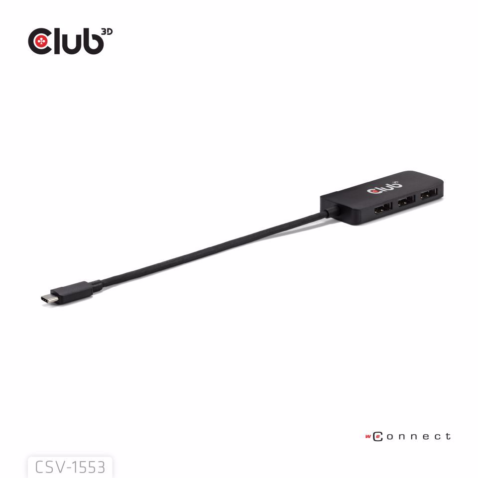 The CSV-1553 is a MST hub to DisplayPort™. This USB-C MST hub is designed to cater for your most versatile connectivity demands, such as Mobile Phone, Tablet, laptop, etc. with a USB Type-C output which supports DP™ Alt-Mode as Host to 3 DisplayPort ports with Ultra High Definition support. It supports DP2.1 AltMode and will allow you to output one Display with max capability of a single 8K30Hz or dual displays of 8K30Hz + 4K144Hz support or triple displays of 4K60Hz Each. It supports on all DisplayPort Alternate Mode supported USB Type-C or Thunderbolt4 compatible devices.
