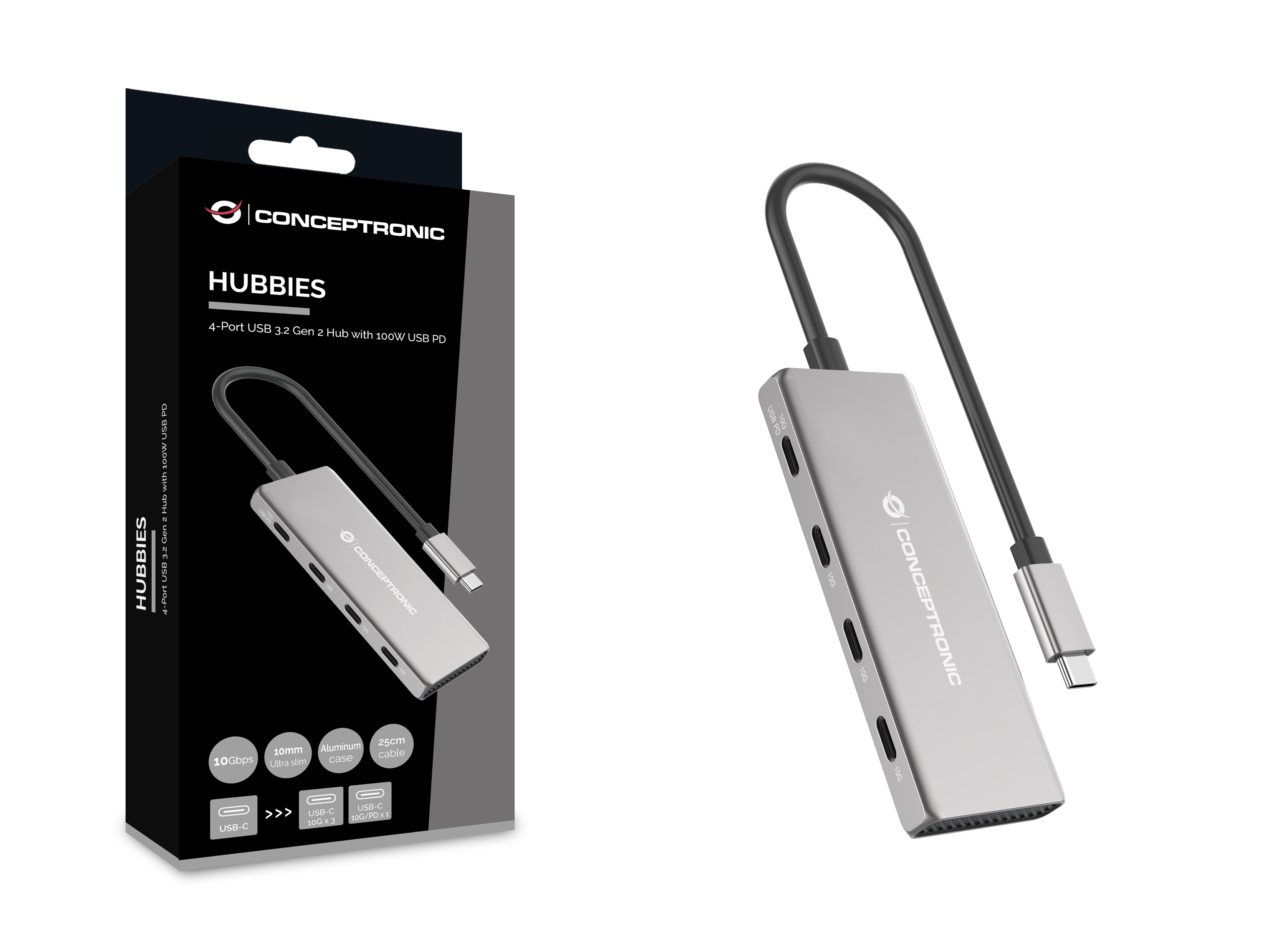 HUBBIES16G makes it easy to add up to 4 USB-compatible peripherals or gadgets to your MacBook, Chromebook Pixel or any similar late-model laptop with USB-C ports. The hub offers you steady and efficient data transmission, with transfer speeds of up to 10Gbps. Additionally, the hub features a USB Power Delivery (PD) function of up to 100W, ensuring fast data transfer and efficient charging in one convenient solution.