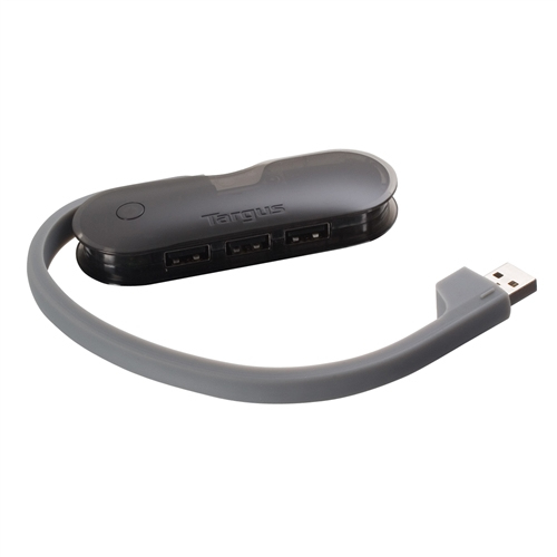 The Targus 4-Port Mobile USB Hub is convenient for those who travel with their laptops and would like to connect to their peripherals via a USB port. Expand one USB port to four high-speed ports to connect and charge your iPod/MP3 player, Smartphone or peripherals through the laptop. The USB cable never gets lost and stores inside of the hub for easy travel. Both compact and sleek, the Targus hub is portable and easy-to-use; simply plug and play.