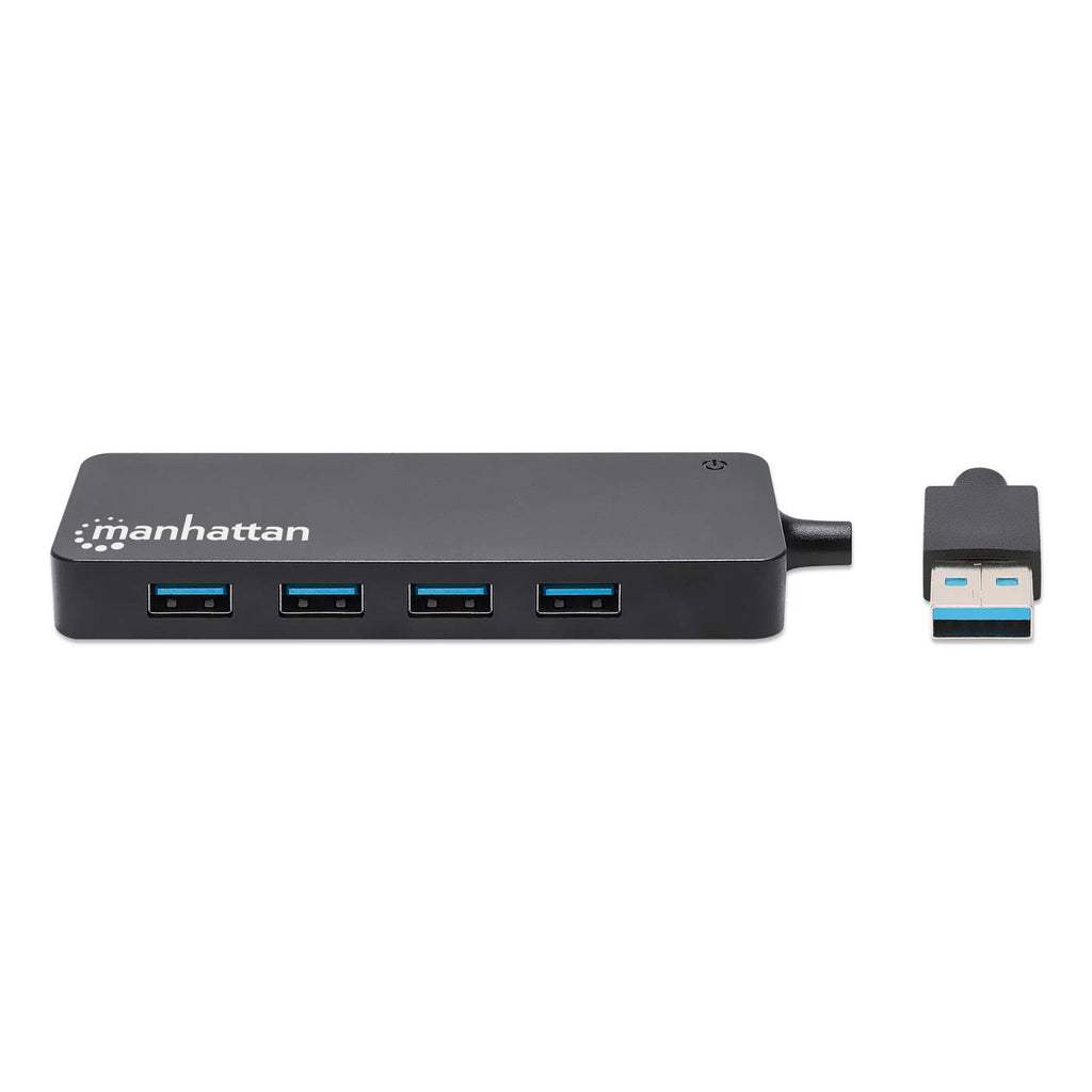 The Manhattan 4-Port USB 3.2 Gen 1 Hub turns one of your device's USB ports into four so you can easily connect a keyboard, mouse, flash drive and more. Devices that fit the SuperSpeed (USB 3.2 Gen 1) spec can reach transfer speeds up to 5 Gbps for external storage, printing and more. The hub's SuperSpeed ports are backward compatible to run older USB versions, too. Plus, you can charge your phone or tablet since the hub supplies up to 5 V / 1 A of power.