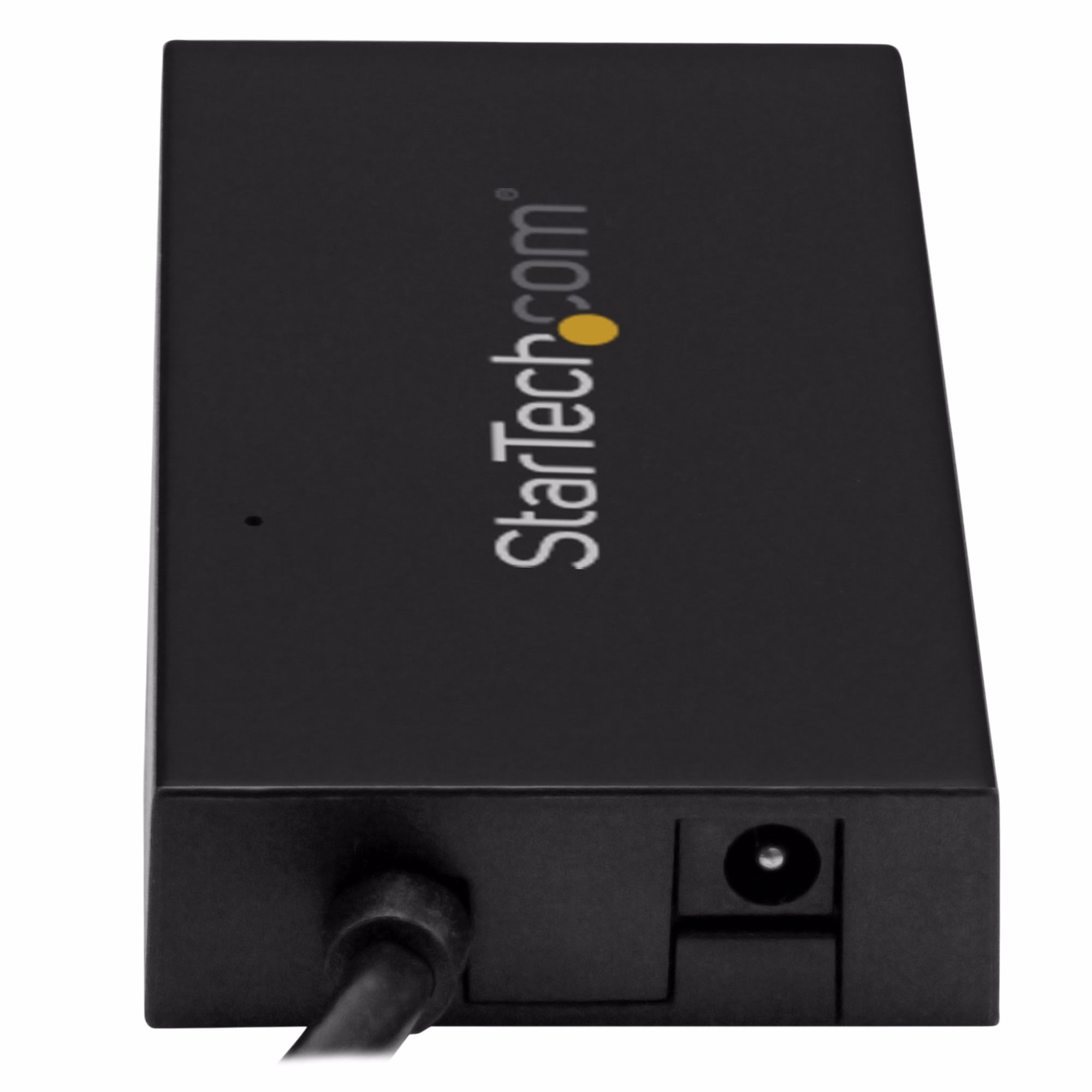 This self-powered USB hub comes with an external power adapter to support power-hungry USB devices, such as larger external drives and enclosures, which require more power than USB power can provide on its own. You can install the versatile USB 3.2 Gen 1 hub virtually anywhere, because it takes up minimal space on a desk, and fits perfectly in hot-desk or BYOD environments.