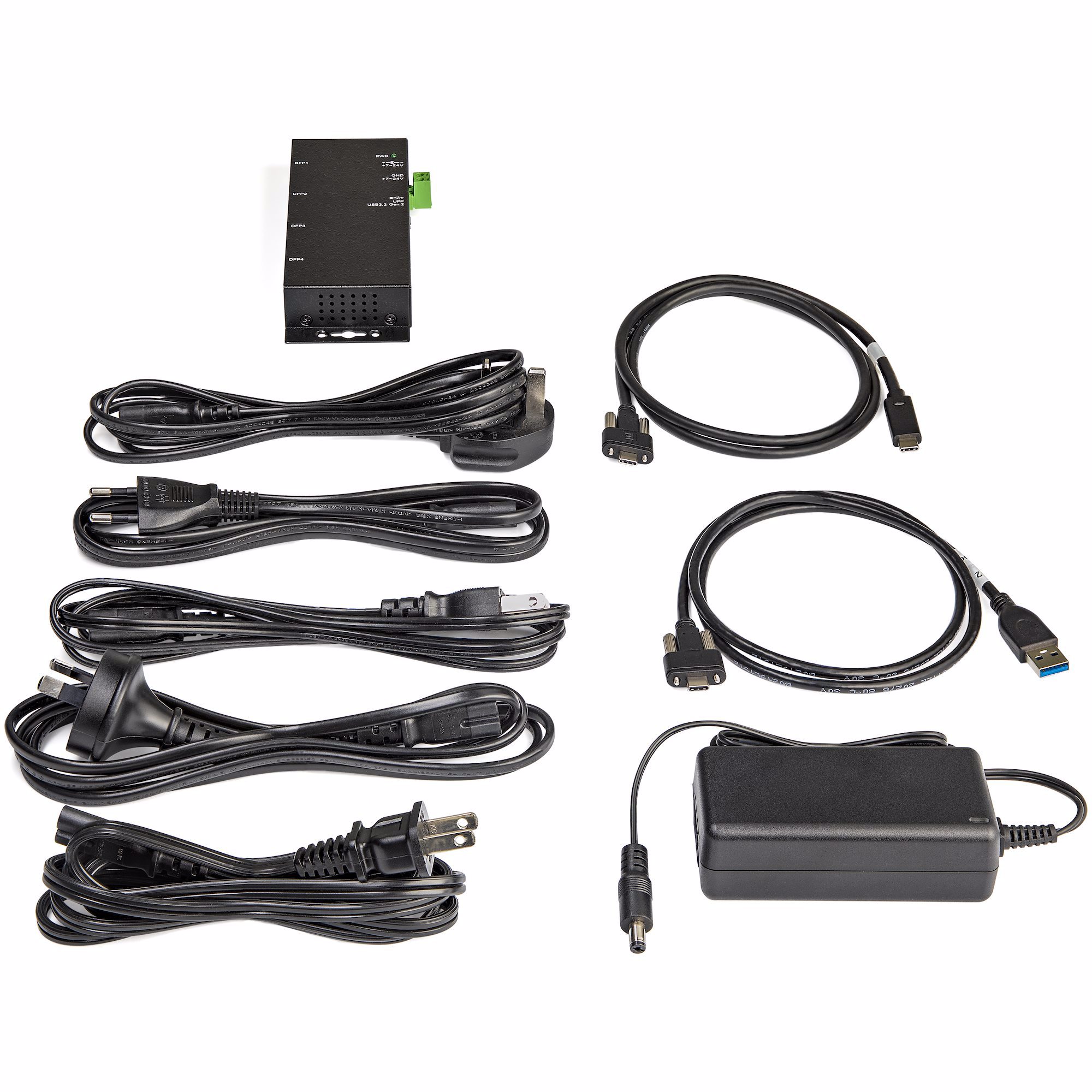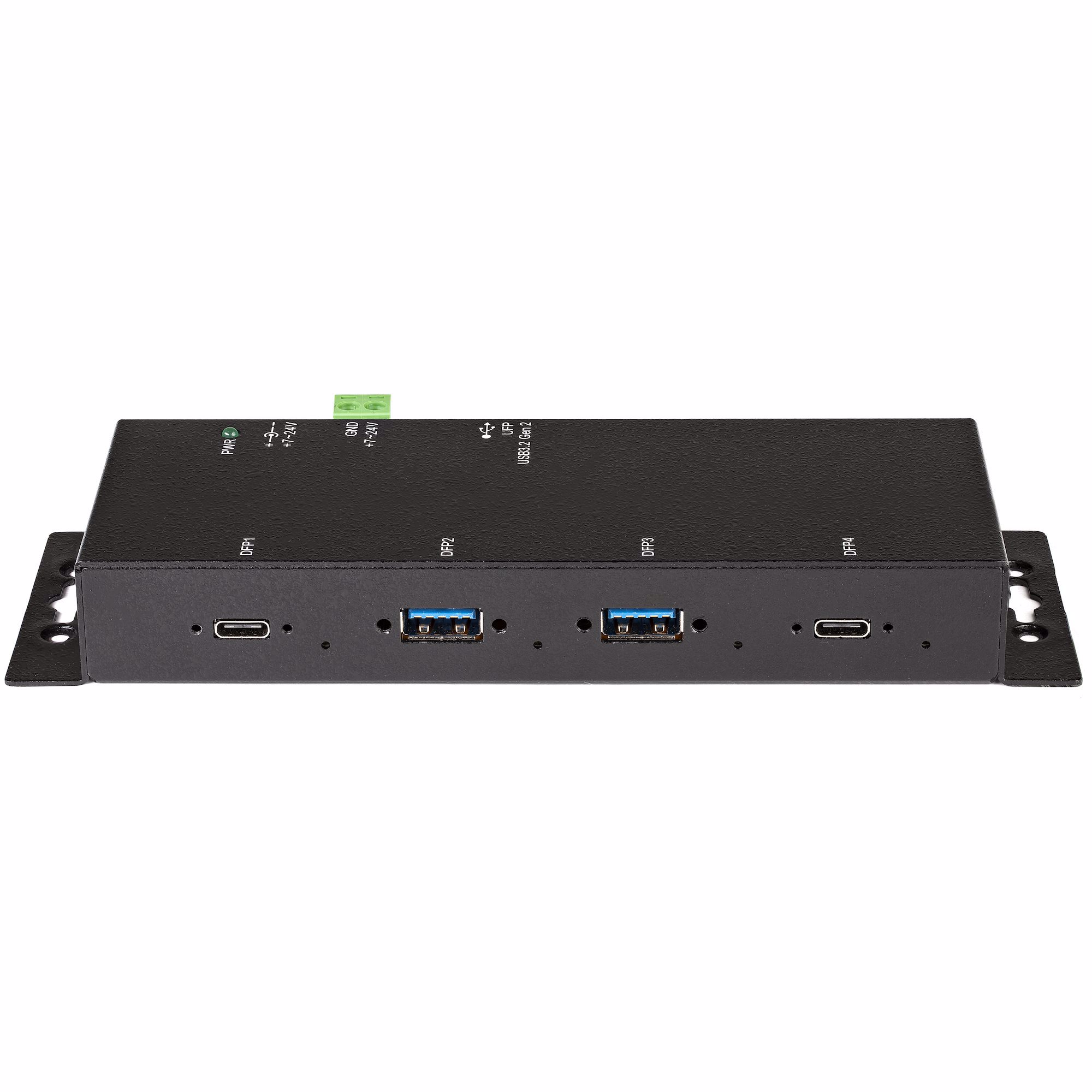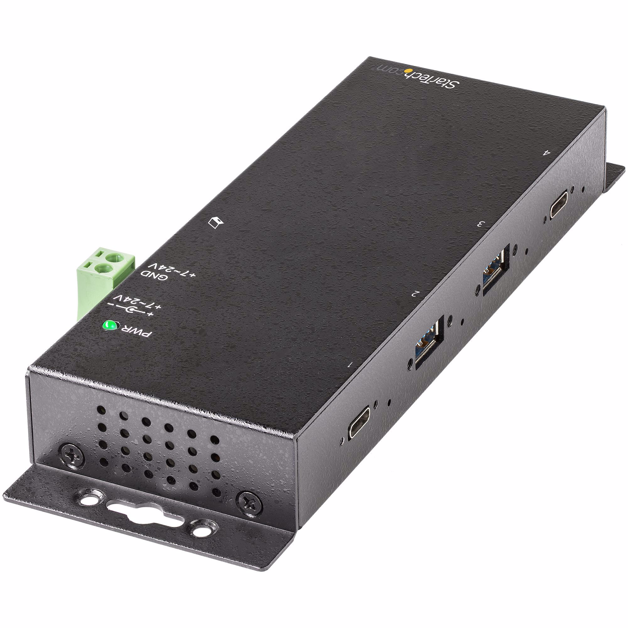 This 4-Port industrial USB hub enables you to connect four SuperSpeed USB 3.2 Gen 2 (10 Gbps) peripherals to your USB-A or USB-C computer. The hub features two USB-A and two USB-C peripheral ports, each with a screw-lock connector, and a metal industrial housing ideal for harsh, industrial environments.