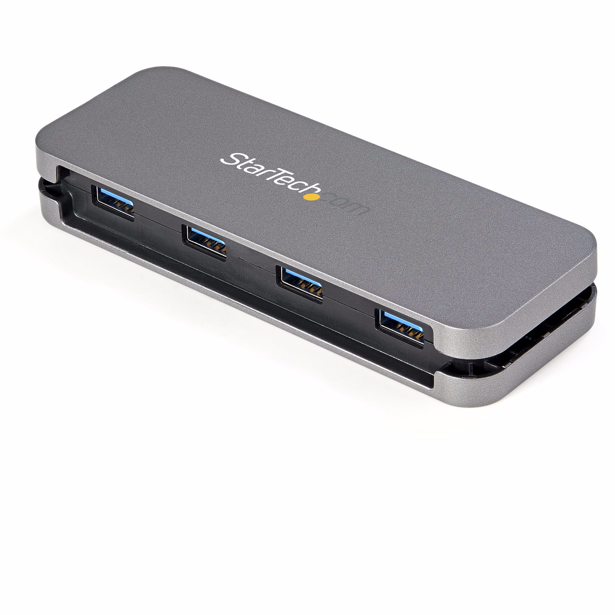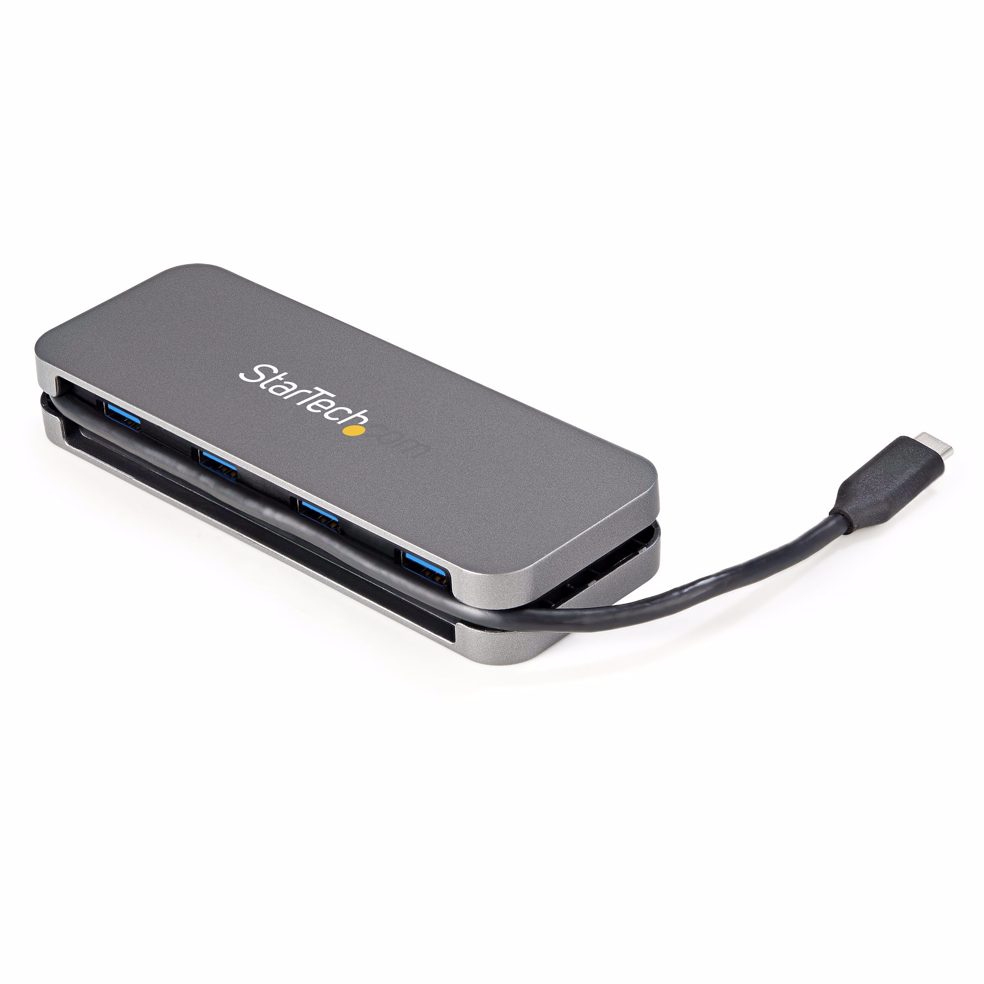 This 4 Port USB-C Hub enables you to connect four SuperSpeed USB 3.2 Gen 1 (5 Gbps) peripherals to your USB-C laptop or computer, an ideal solution for adding USB ports to a device that has limited USB ports available. It features a wrap-around cable manager, allowing you to tuck away the built-in cable for easy portability.