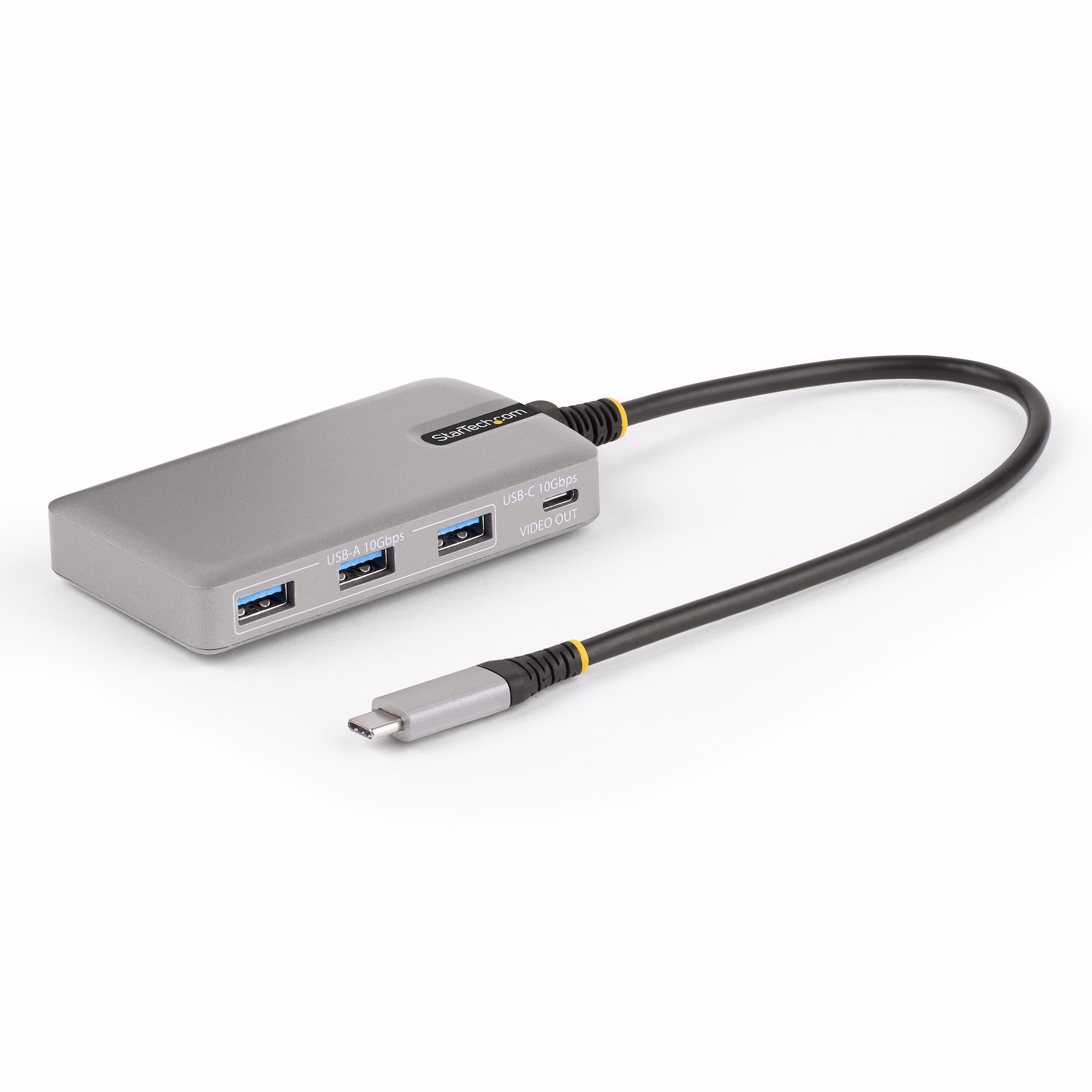 This USB Type-C Hub with USB-C DP Alt Mode Output and 100W USB Power Delivery pass-through adds four USB 3.2 Gen 2 (10Gbps) ports (3x USB-A, 1x USB-C) to a USB-C enabled computer. The Hub supports USB-C DP Alt mode on the downstream USB-C port, enabling the connection of USB-C portable monitors or desktop monitors. Connect the USB hub to a USB-C port on a laptop, using the built-in 1ft (30cm) USB-C host cable. Charge a host laptop by connecting the host laptop's USB-C power supply to the USB Power Delivery (PD) 3.0 port. Backward compatibility with USB 2.0 (480Mbps) devices ensures support for a wide range of modern and legacy USB peripherals.