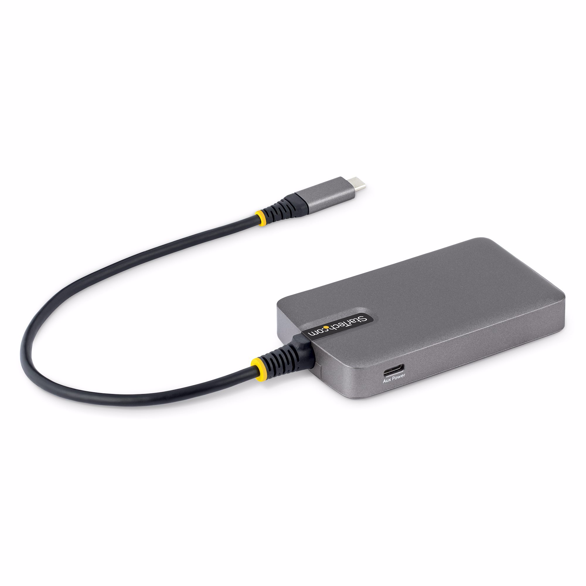 This device is OS independent, supporting all operating systems, including Windows, macOS, ChromeOS, iPadOS, and Android. The Hub is automatically detected, configured, and installed upon connection to a host computer. This ensures automatic installation and with any USB-C laptop, including Thunderbolt and USB4 computers such as Apple MacBook (Intel/M1/M2/M3/M4), Lenovo X1 Carbon, and Dell XPS. The built-in extra-long 1 ft. (30 cm) USB-C host cable ensures easy setup and reduces connector strain on 2-in-1 devices such as the Surface Pro 7, iPad Pro, HP Elite X2 and laptops on riser stands.