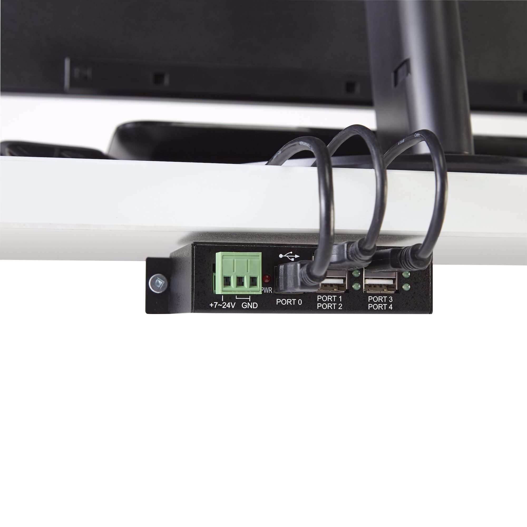 This TAA compliant 4-port industrial USB 2.0 hub gives you the scalability you need in harsh industrial environments, product and repair labs, conference rooms or office workstations. With its rugged industrial grade metal housing, it is designed to meet the advanced requirements of connecting a high number of devices in factories and office environments.