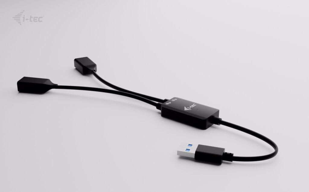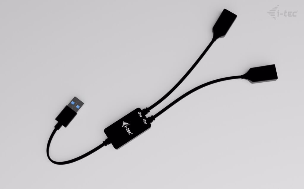 This HUB provides two USB ports (2× USB-A), allowing you to connect your external keyboard and mouse, transfer data or movies from a USB flash drive at speeds up to 5 Gbps, or charge your mobile devices.