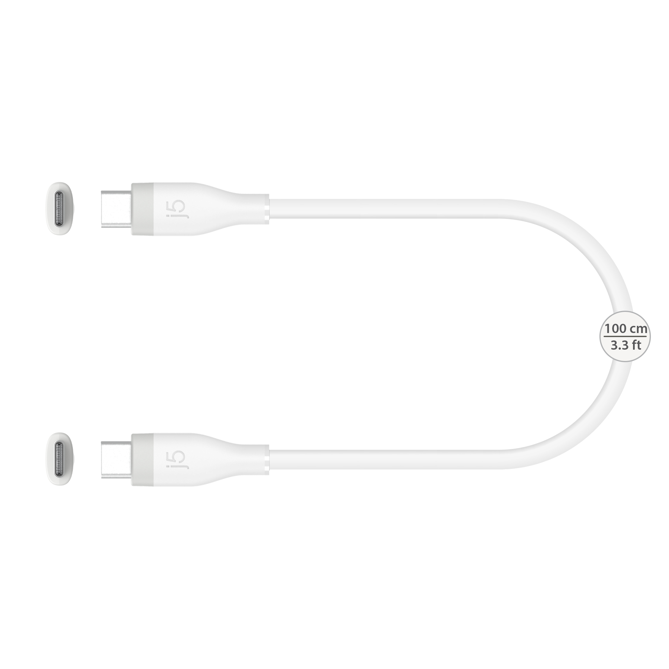 j5create USB-C® 60W Hurtigopladningskabel i flydende silikone, 1,8 m, USB C, USB C, 0,48 Gbit/sek., Hvid