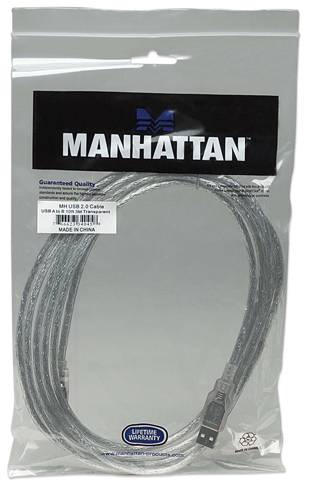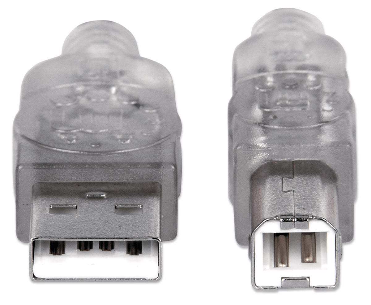 Manhattan Hi-Speed USB 2.0 Device Cables easily connect USB peripherals and accessories with desktop and notebook computers. Ideal for use with many USB external enclosures, hubs and other hot-swap, Plug and Play devices, Manhattan Hi-Speed USB 2.0 Device Cables support data transfer rates up to 480 Mbps on Windows and Mac systems for fast, reliable transmissions. Gold-plated contacts, shielding and fully moulded boots with strain relief help provide dependable connections, maximum conductivity and minimal data loss with reduced EMI interference.