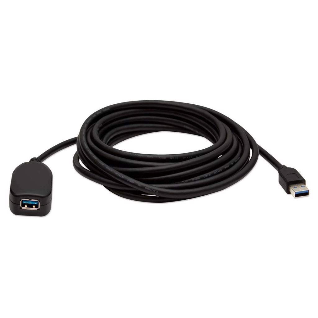Use the Manhattan SuperSpeed USB Active Extension Cable to connect a computer USB port to a USB device almost anywhere in the room. Extend 5 meters more to the existing connection without signal loss. Manhattan SuperSpeed USB Active Extension Cable with built-in repeater is fully compliant with USB 3.0 and earlier specifications to help devices operate at maximum performance levels. Plug-and-play capability, Windows/7/8.1/10/Macintosh versatility and no external power or driver requirements help provide greater flexibility in computer and peripheral placement and office layout.