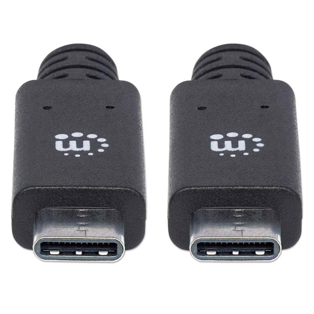 The Manhattan SuperSpeed+ USB-C Device Cable easily connects a USB Type-C peripheral or accessory to a Type-C device port. Ideal for use with any USB Type-C plug-and-play device, this cable supports fast, reliable data transfer rates up to 10 Gbps on Windows and Mac as well as current up to 5 amps (100 W). Nickel-plated contacts, shielding and fully moulded boots with strain relief provide dependable connections, maximum conductivity and minimal data loss with reduced EMI interference.