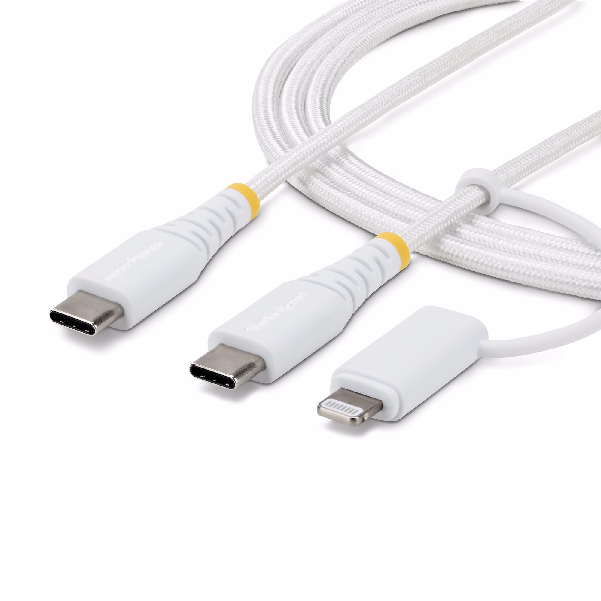 Equip your workspace with a versatile 2-in-1 USB-C to C cable that provides charging for both USB-C and Apple Lightning devices.