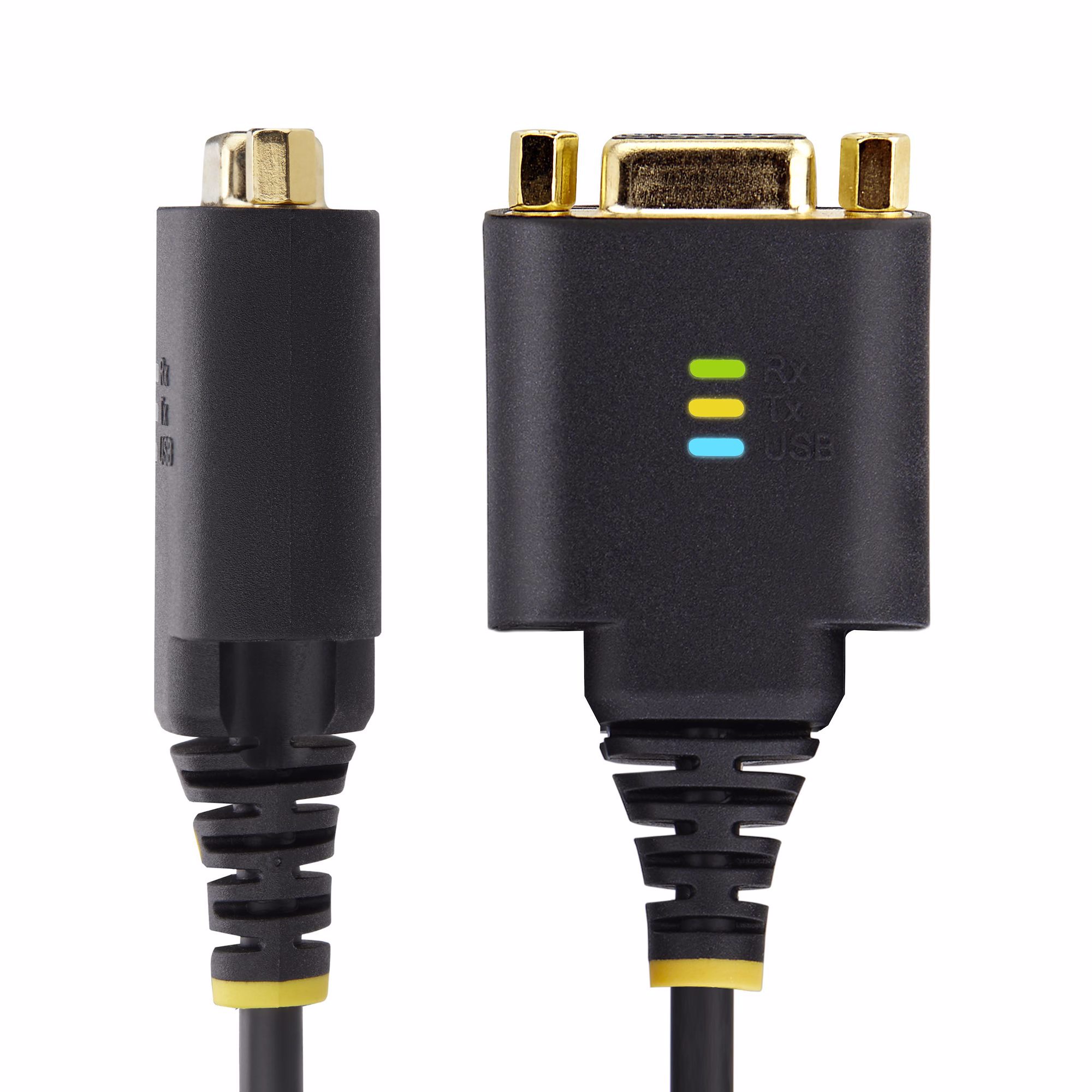 The rugged TPE construction and Level-4 ESD protection (15kV air and 8kV contact) enhance the reliability and longevity of the USB to Serial Adapter. Copper shielding minimizes Electromagnetic and Radio Frequency Interference (EMI and RFI). Gold-plated connectors enhance signal conductivity.