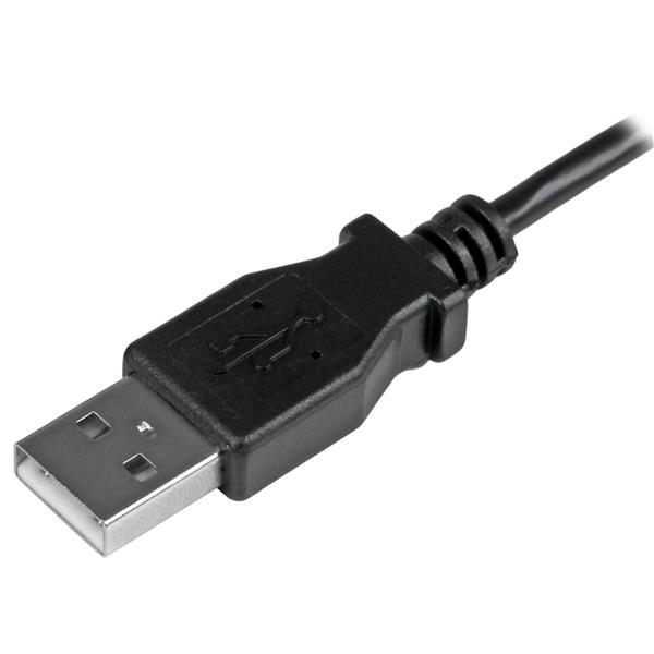 This Micro-USB cable features 24 AWG wire to provide the full power you need to charge your mobile devices faster. The cable features a left-angled Micro-USB connector, so it’s great for charging your mobile devices in a car, or for accessing your mobile device while it’s connected to a car charger or computer.