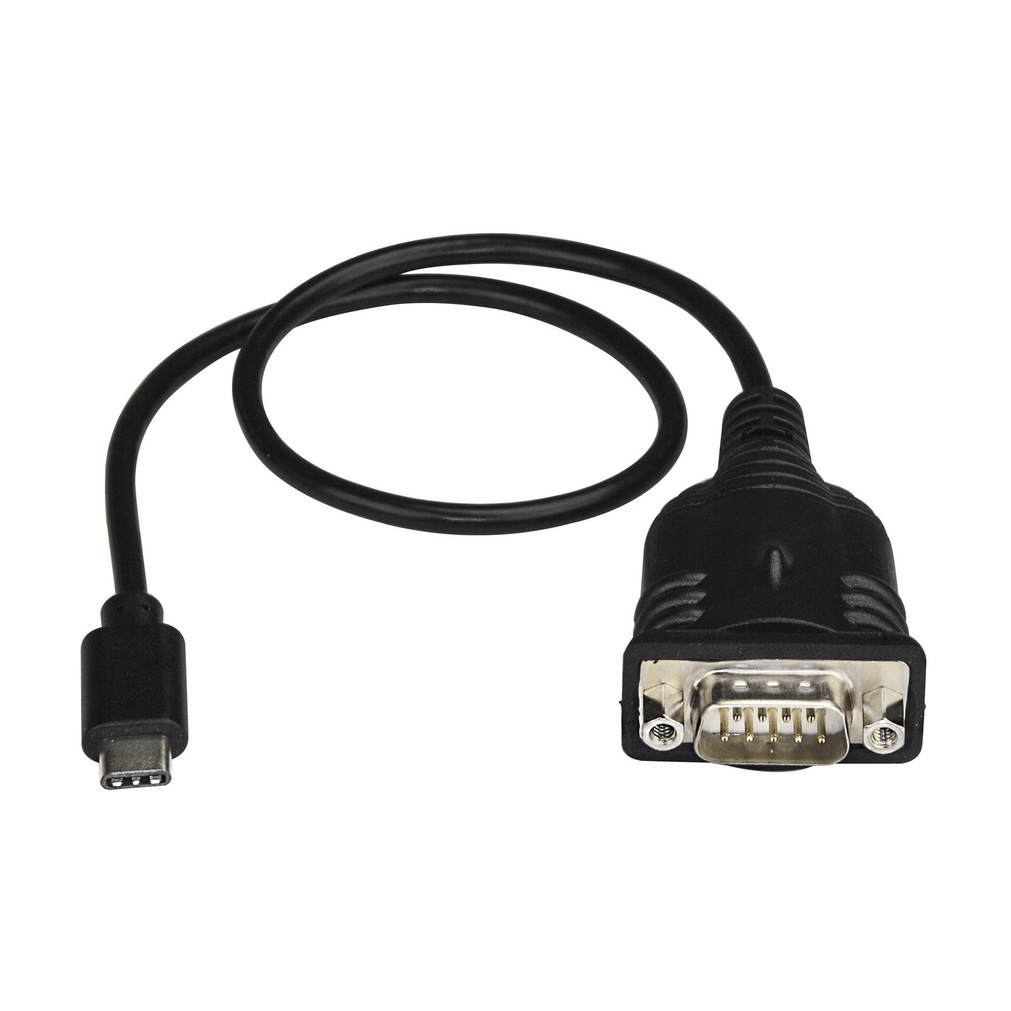 This USB-C™ to serial adapter lets you connect your USB-C devices to your legacy serial equipment. It converts a USB-C port on your laptop or computer into a RS232 DB9 serial port, giving you a cost-saving way to connect to serial devices such as point-of-sale terminals, serial modems, industrial equipment, and a wide variety of other RS232 peripherals.