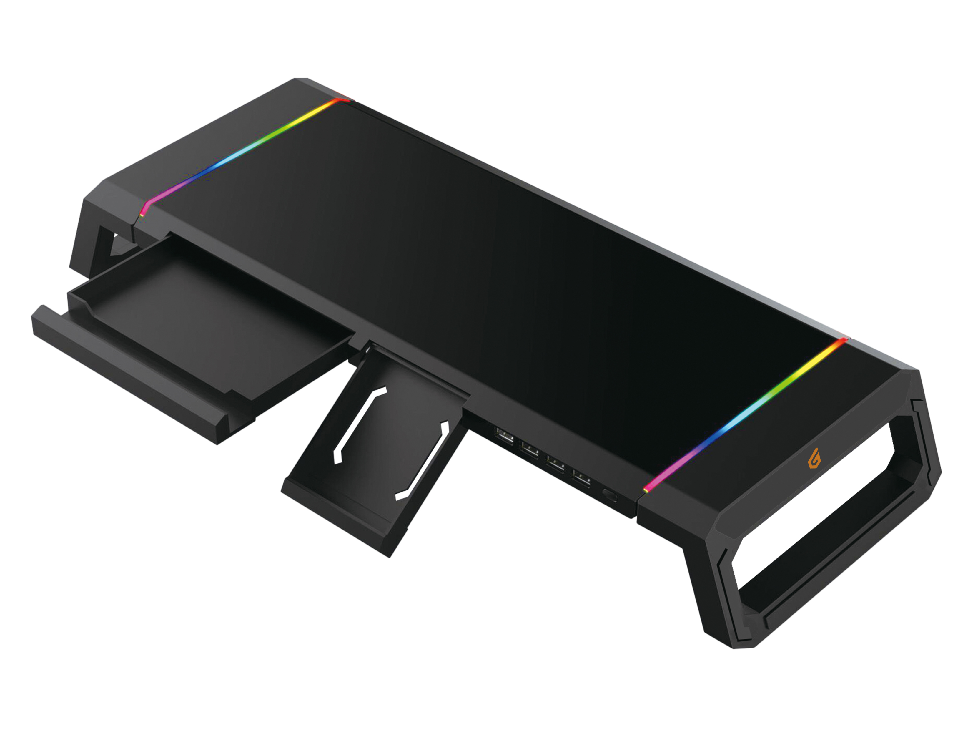 The THORNE gaming monitor stand is a smart desk organizer that is designed to let you say ‘goodbye’ to a messy workspace, while adjustable RGB color effects create a stunning gaming atmosphere. Rather than setting your monitor directly on the desktop, this high-quality stand elevates it to an ergonomically correct eye position, while providing additional workspace and increased storage area, decreasing desktop clutter. Reduce eye and neck strain while working smarter in a more organized environment.