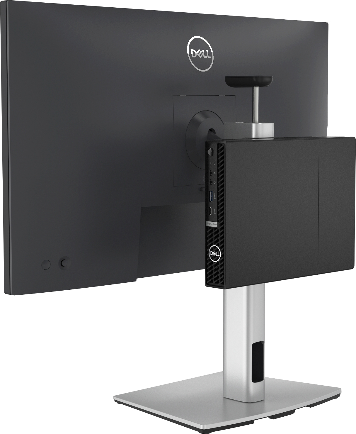 Secure your OptiPlex Micro Desktop and Dell monitor with an all-in-one stand with effortless setup and a cable management system for a clean workspace.