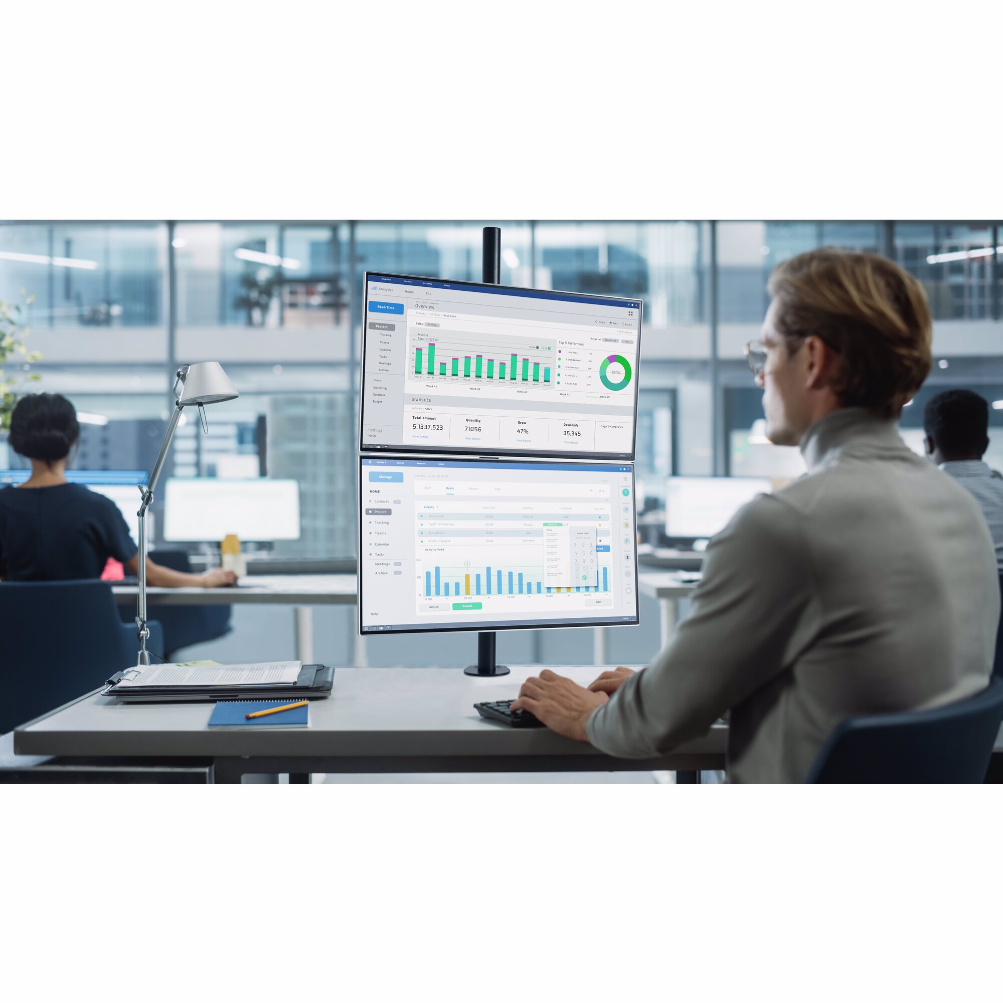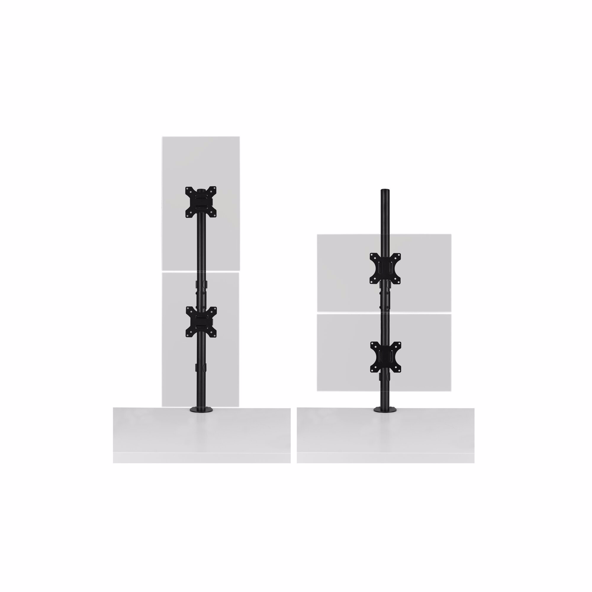 Uanset om du er gamer, sikkerhedsprofessionel, der prøver at maksimere din skrivebordsplads eller blot ønsker at udvide web-browsing fra top til bund, tilbyder Vertikal dobbelt stablings-monitorarm stabil og sikker vertikal positionering af to skærme, hver op til 32 (9 kg/19,8 lbs). Let at installere og justere, fuldbevægelsesdesignet tilbyder monitorplacering i enhver retning, mens den integrerede kabelstyring reducerer rod.