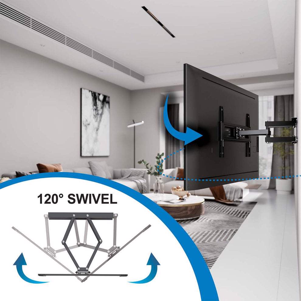 Whether you're hosting a backyard movie night or setting up a patio display, this full-motion mount offers a complete range of adjustments. Achieve the perfect viewing angle with +10° to -20° tilt, ±60° swivel, and ±3° post-installation leveling.