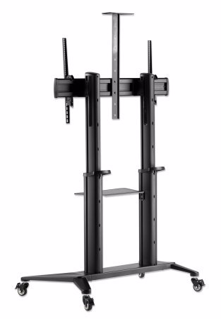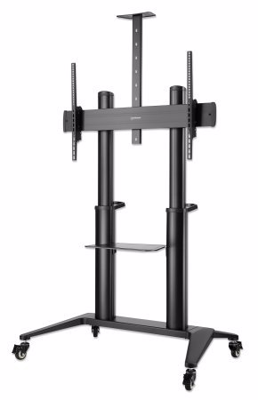 Bring the TV to you. When it needs to be somewhere else, move it there with ease. The Manhattan Aluminum Height-Adjustable Multimedia TV Cart puts the TV on wheels so you can take it to different spaces as needed, avoid an annoying glare, or overcome a restrictive furniture setup. VESA-compliant and constructed of quality aluminum materials, this well-made, heavy-duty rolling TV stand supports even huge TVs up to 120" and can support a total weight up to 140 kg (308 lbs.).