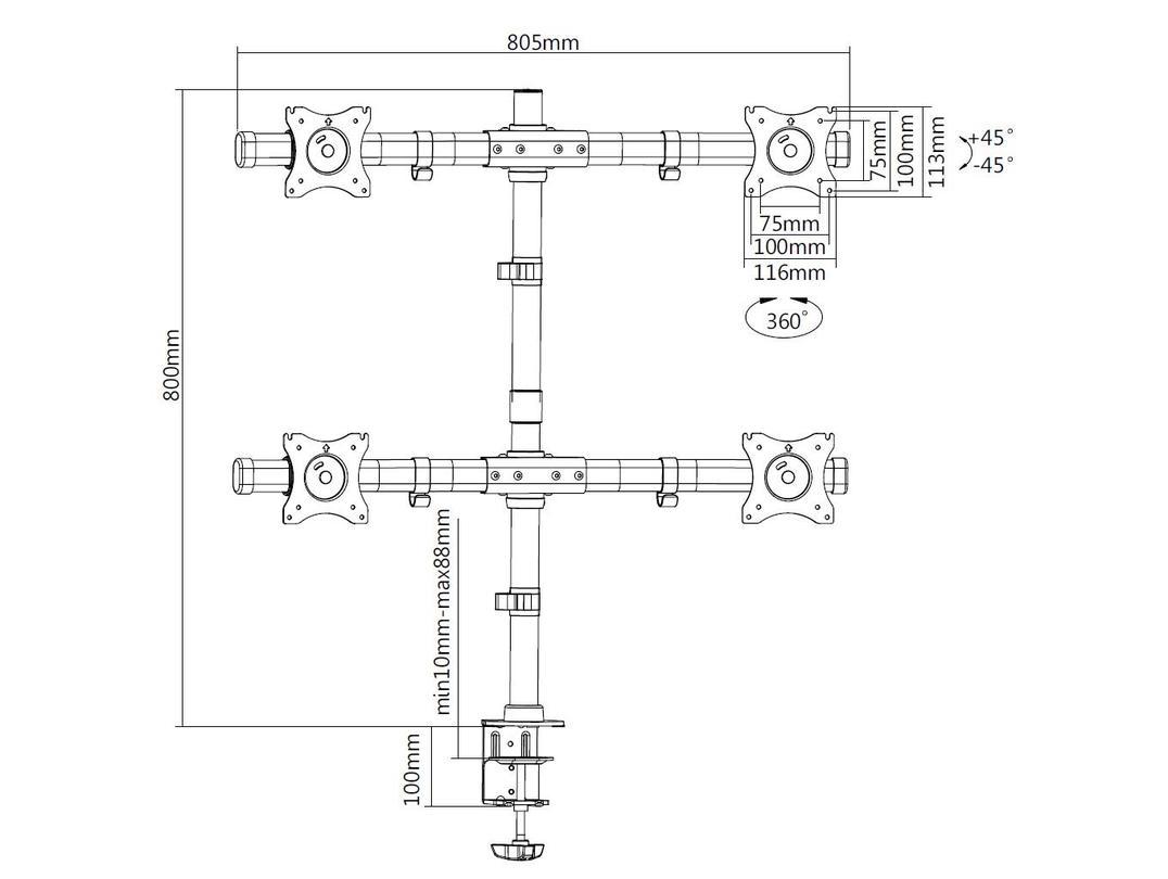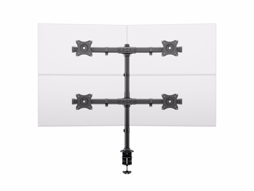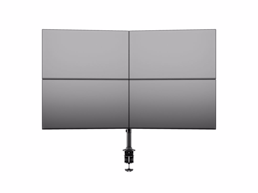 The M Desktopmount Basic Quad is your new office partner giving great flexibility and ease of adjustment and works with almost all LCD screens on the market supporting VESA standards of 75/ 100mm holding screen weight up to 8 kg.