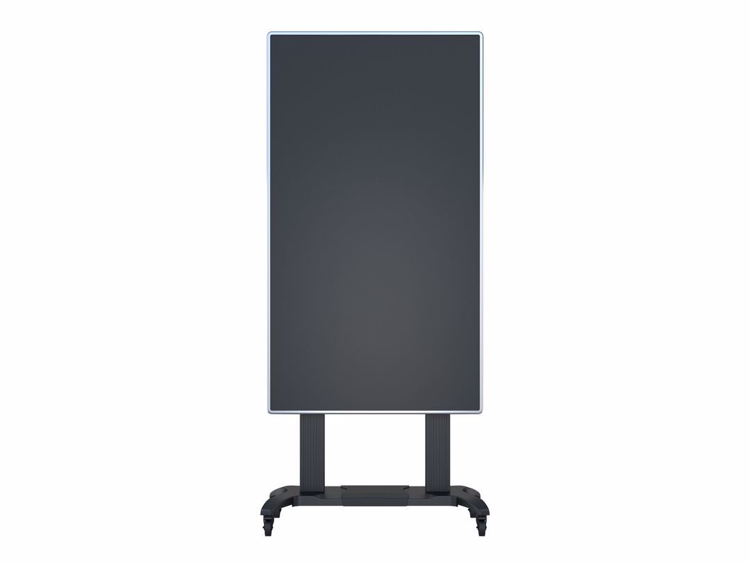 The M Public Floorstand Dual Pillar 180 HD can be used with screens in a standard landscape mode. It can be used with or without shelf (included) and a camera holder (included).