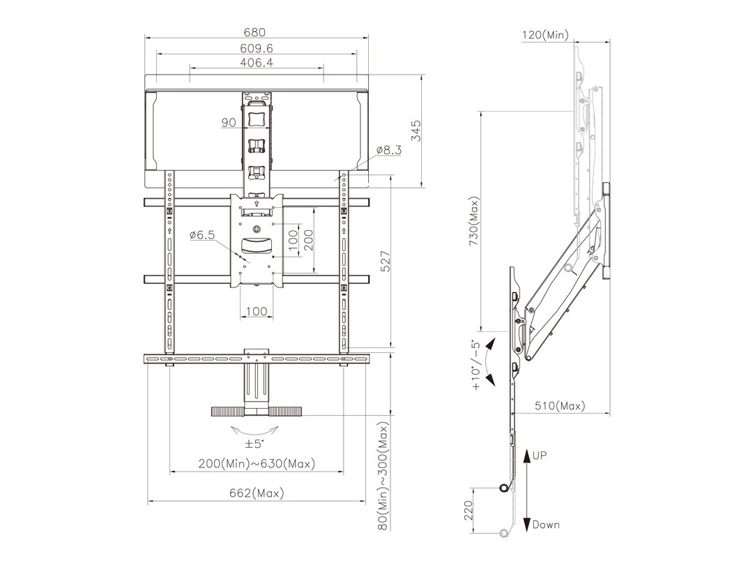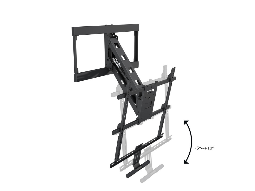 Do you want to position your TV high or low depending on situation. Get a always comfortable eye-level view. This spring-assisted mount lets you effortlessly pull the display forward and down to a comfortable viewing position, where you can turn it left or right for any angle. When not used the display can be moved up the mount returns the display to its its original position flat above.