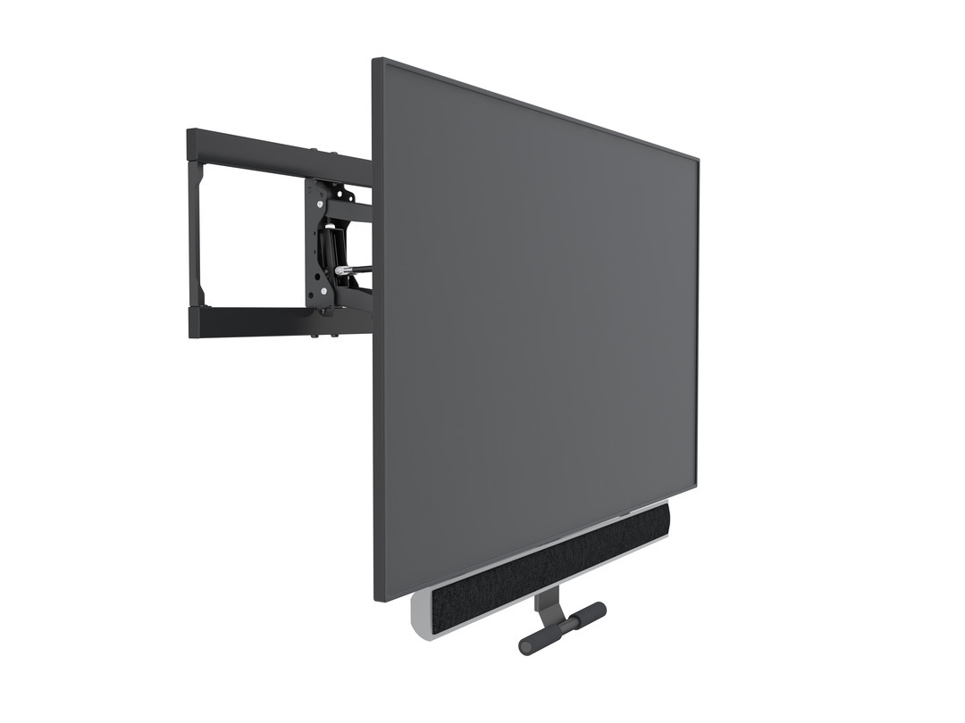 The M Pull Down Full Motion Flexarm is a perfect conference or gaming solution and therefore includes a camera holder and soundbar holder.