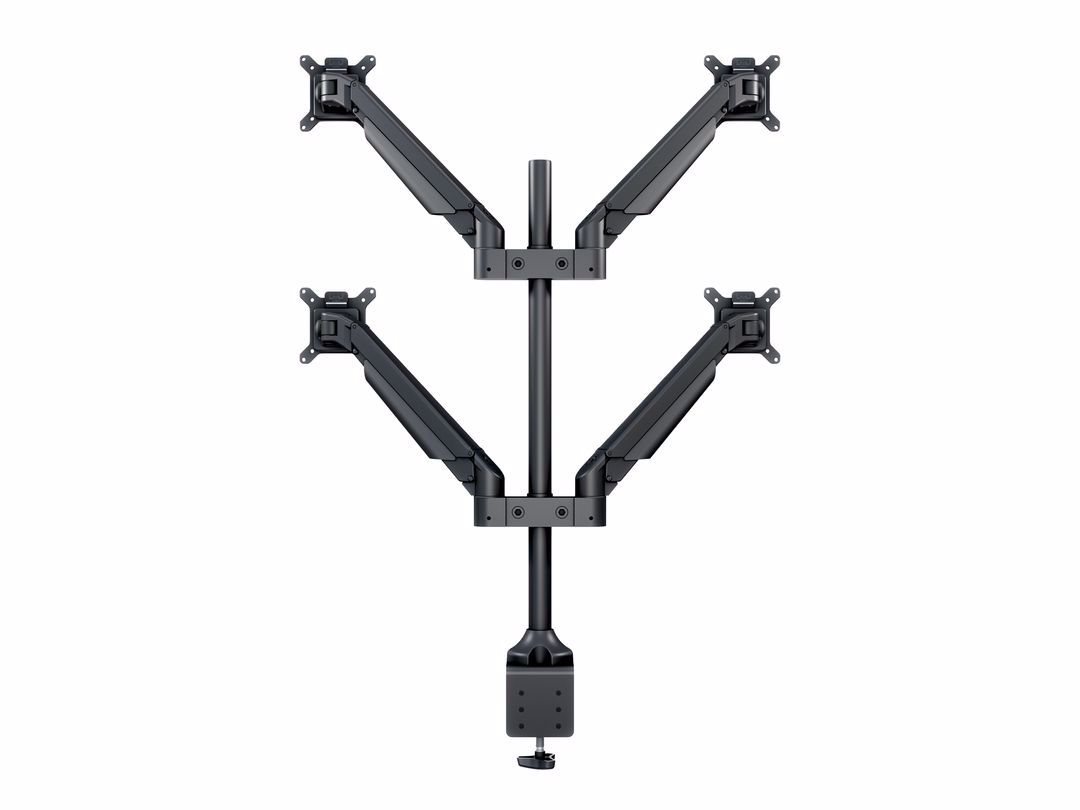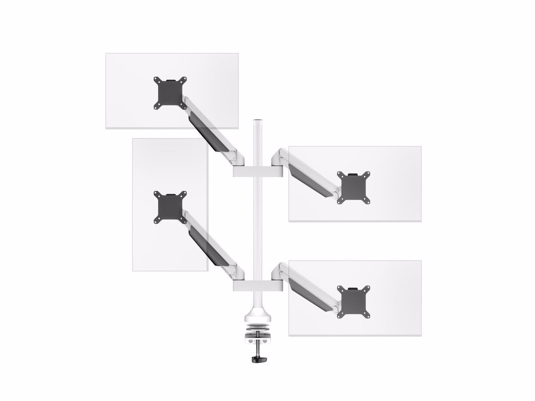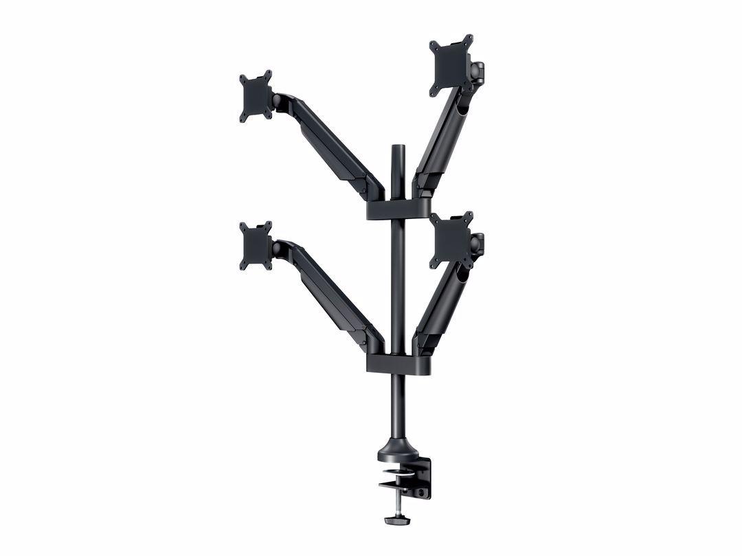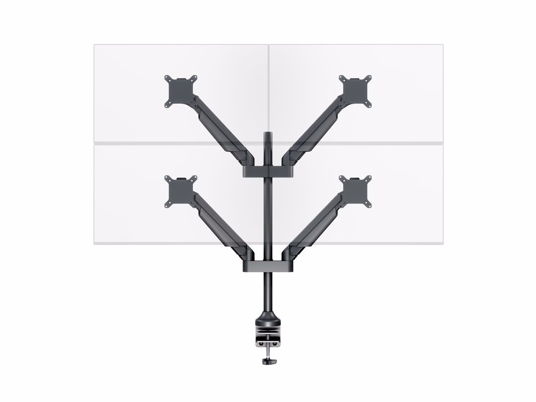 The M Vesa Gas Lift Arm Quad holds to your standard workdesk (max 50mm), or assemble it using a workdesk thru hole technique.