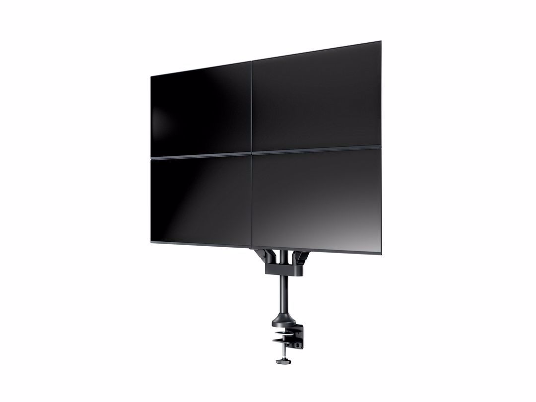 The Quad triple jointed gas suspended monitorarm was designed by Multibrackets to optimize your productivity and help reducing strain on neck, back and eyes.