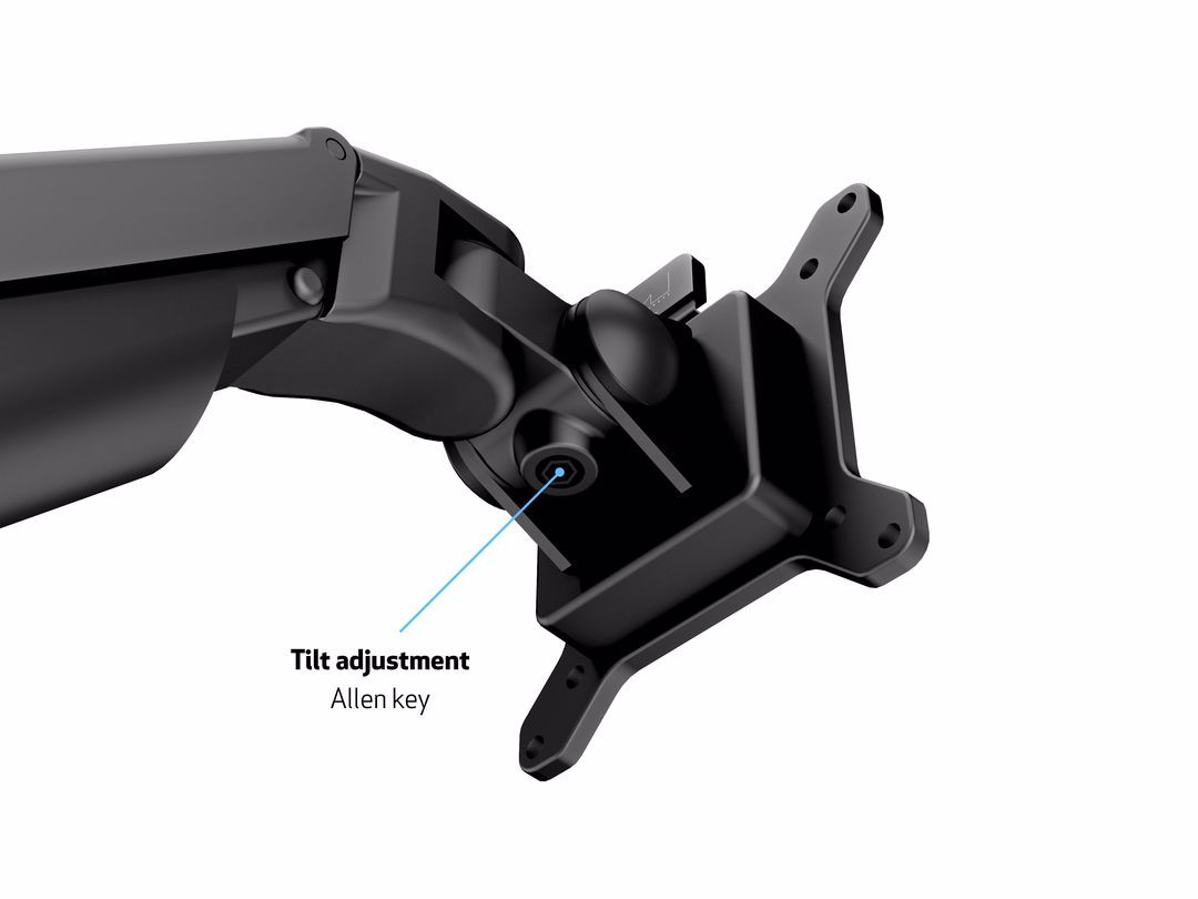 The M Vesa Gas Lift Arm is made out of a durable aluminum construction and uses a gas driven suspension technique. This makes the screens "float" and they can be moved with near zero effort. Sleek and streamlined, the M Vesa Gas Lift Arm frees up space and allows positioning of your displays for greater productivity. Fingertip tilt provides smooth adjustment for two LCD´s in any direction. Easy move the screen from landscape to portrait position or move the screens close to the desk, high up, matching almost any wanted working position imaginable.