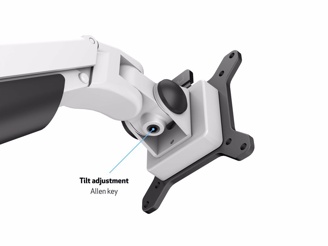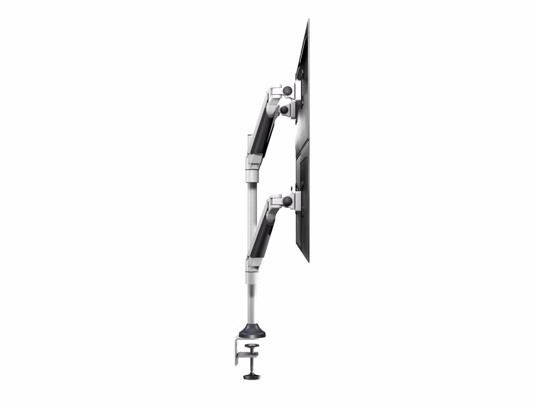 The M Vesa Gas Lift Arm is made out of a durable aluminum construction and uses a gas driven suspension technique. This makes the screens "float" and they can be moved with near zero effort. Sleek and streamlined, the M Vesa Gas Lift Arm frees up space and allows positioning of your displays for greater productivity. Fingertip tilt provides smooth adjustment for two LCD´s in any direction. Easy move the screen from landscape to portrait position or move the screens close to the desk, high up, matching almost any wanted working position imaginable.