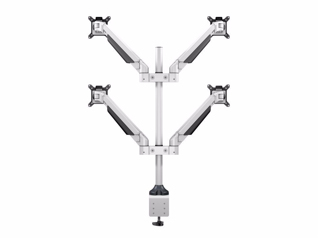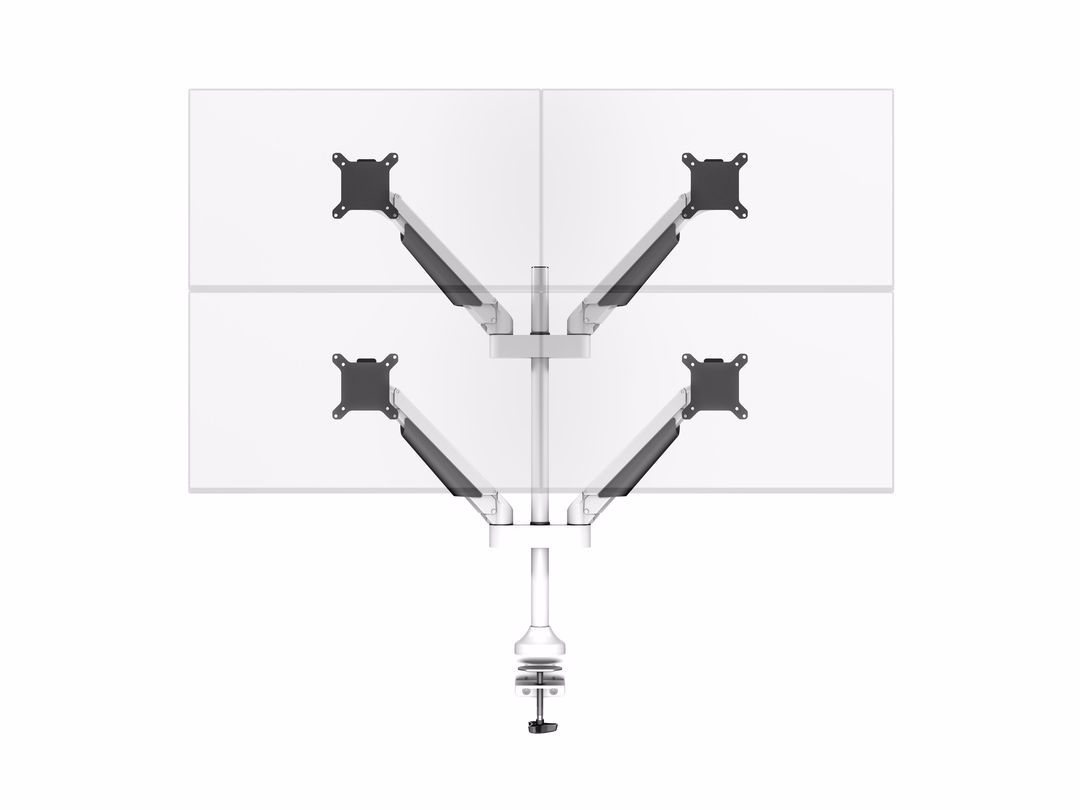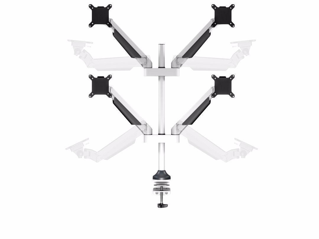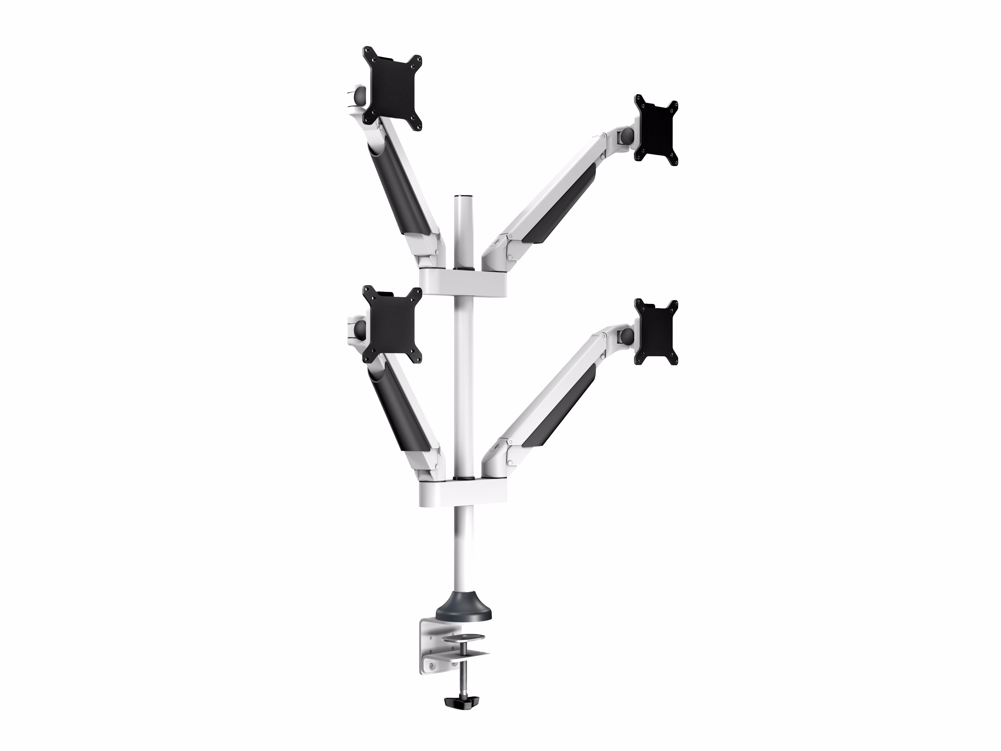 The M Vesa Gas Lift Arm Quad holds to your standard workdesk (max 50mm), or assemble it using a workdesk thru hole technique.