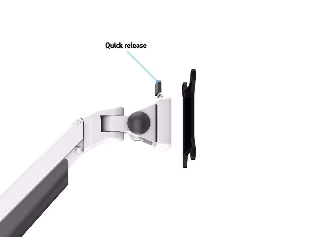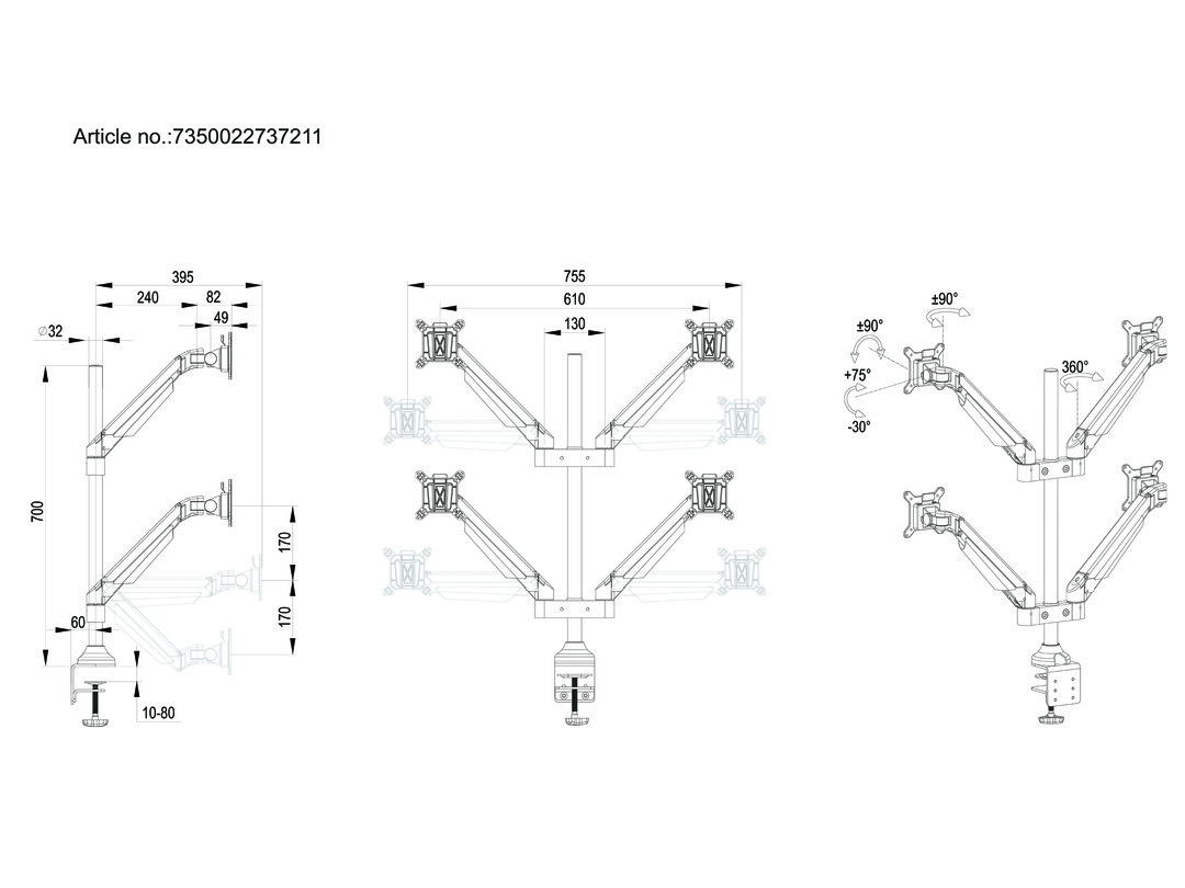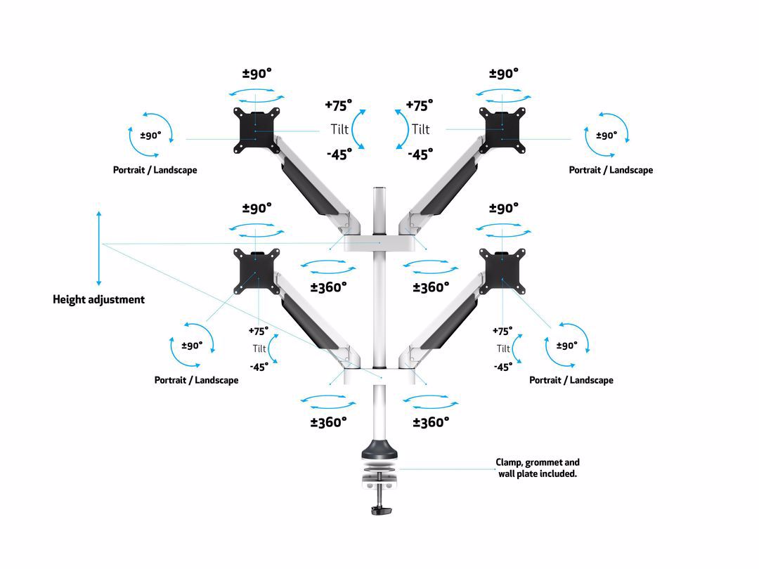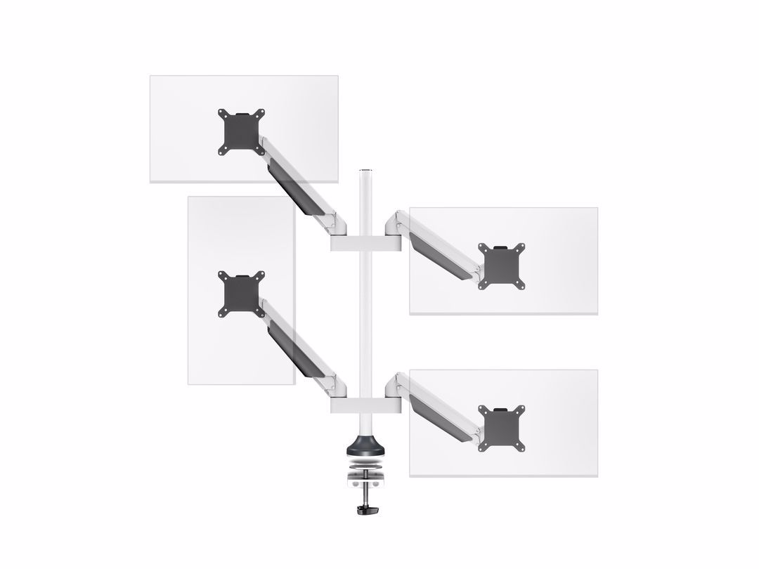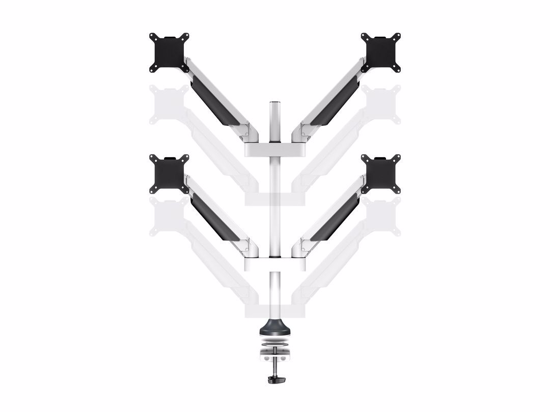 The M Vesa Gas Lift Arm Quad holds to your standard workdesk (max 50mm), or assemble it using a workdesk thru hole technique.