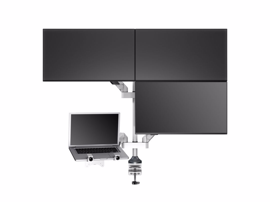 The Quad triple jointed gas suspended monitorarm was designed by Multibrackets to optimize your productivity and help reducing strain on neck, back and eyes.