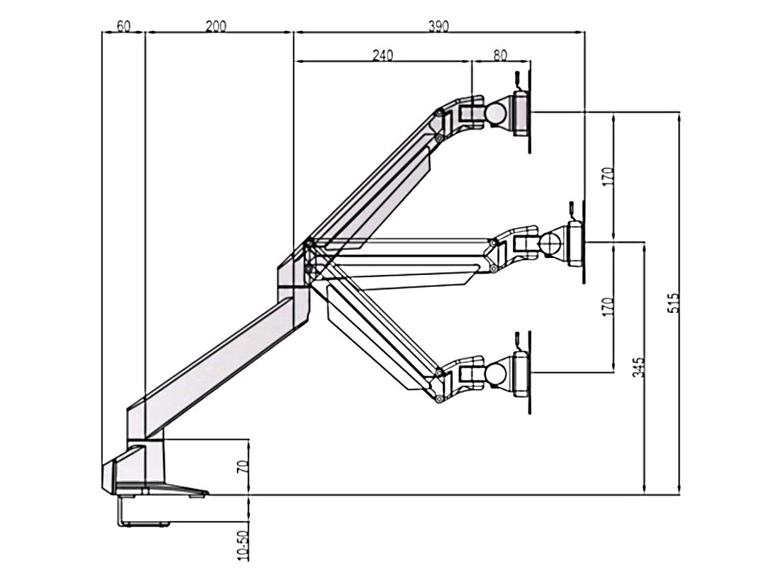 A triple jointed gas suspended monitor arm, designed by Multibrackets to optimize your productivity and help reducing strain on neck, back and eyes.