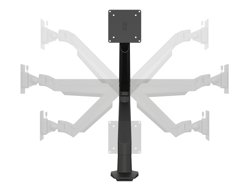The M VESA Gas Lift Arm Single holds to your standard workdesk (max 50mm), or assemble it using a workdesk thru hole technique.