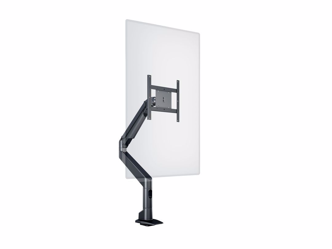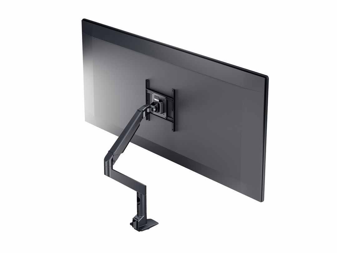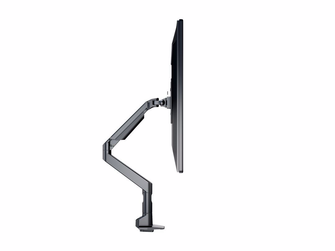 The M VESA Gas Lift XL Single Black is made out of a durable aluminum construction and uses a gas driven suspension technique. This makes the screen "float" and it can then be moved with near zero effort. Sleek and streamlined, the M VESA Gas Lift XL Single Black frees up space and allows positioning of your display for greater productivity. With a maxload of up to 10kg even very big monitors can be used. The height clearance is 615 mm above the desk. Rotation function is not used for widescreen or ultrawide screen monitors. The unique counterbalance gas technology provides smooth adjustment in any direction. Easy move the screen from landscape to portrait position or move the screen close to the desk, high up, matching almost any wanted working position imaginable.