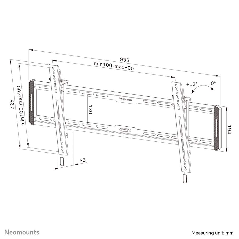 The Neomounts WL35-550BL18 LEVEL is a tiltable wall mount for flat screens up to 86" with a maximum weight capacity of 60 kg. The versatile tilt (12°) technology allows you to create the optimum viewing angle.